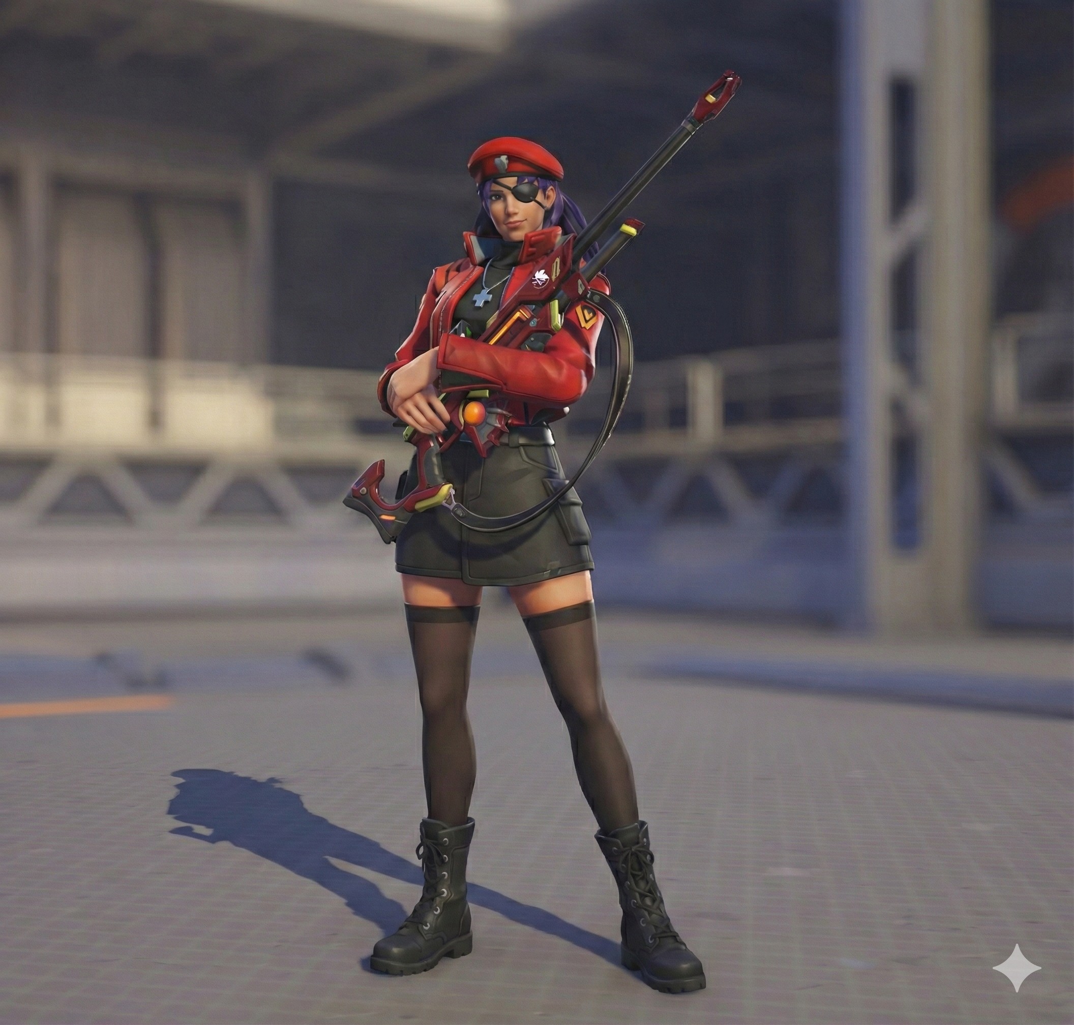 Ana - Misato AI Slop skin concept. (ignore the fucked up eyepatch being on the left eye, AI is retarded)