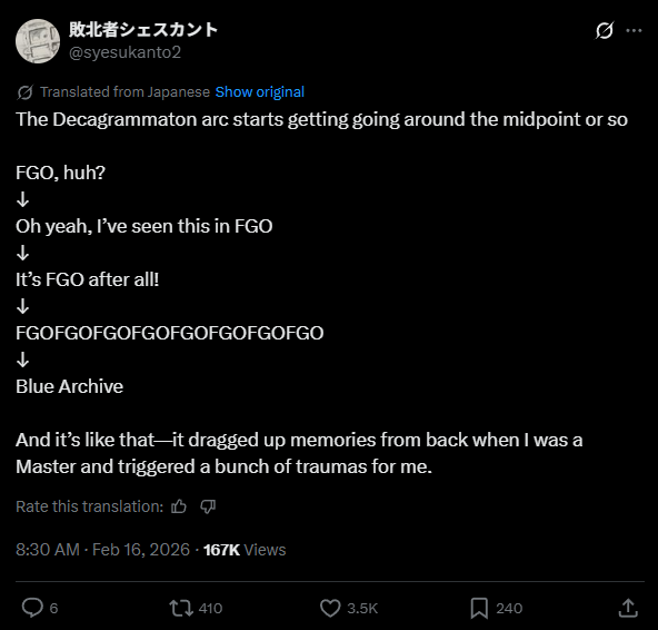 >Nips are comparing Vol EX to fgoThey're right. Vol EX took heavy inspiration from LB4 and LB5