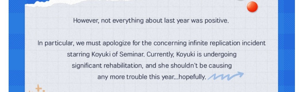 >>557713601The most obvious storyline I can see is if Makoto is overthrown and replaced by an Authoritarian that clamps down hard on the usual Gehenna shenanigans.The problem is Kaya did this already in Vol.4. Whoops.