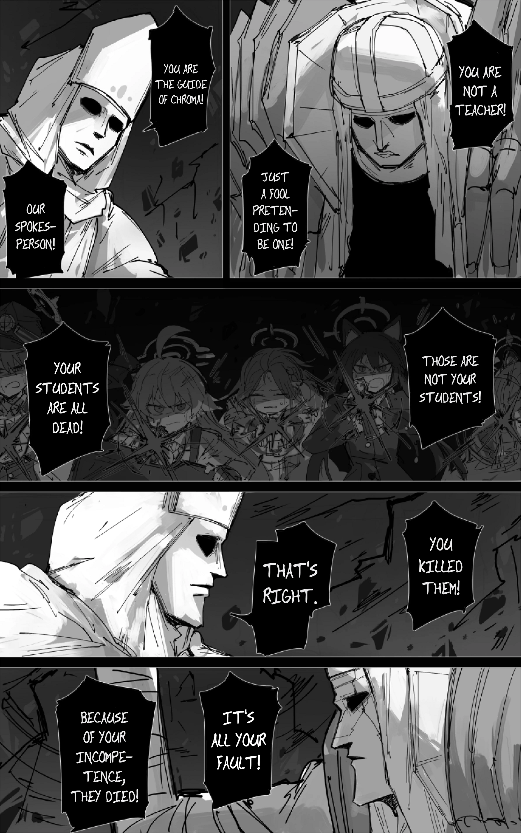 >>557713405>Beatrice, somehow returned.>She fuses with Chroma and possesses all the bosses in the game including Malkuth.>We kill Malkuth, she finally reunits with the gakis.>The prophets and the mimesis die for real this time.>Terror students die, including Kuroko and Mika Terror.>Sensei sacrifices his adult card, meaning he can no longer recruit more new students.>Final confrontantion against Beatrice-Chroma, So Schale's Sensei, you thought Kivotos was real?>She reveals Kivotos is a simulated world. She also reveals Sense was dead in real life. The moment he sacrifices his adult card, he will disappear as well.>Game ends, blank screen, Congratulations for beating Blue Archive