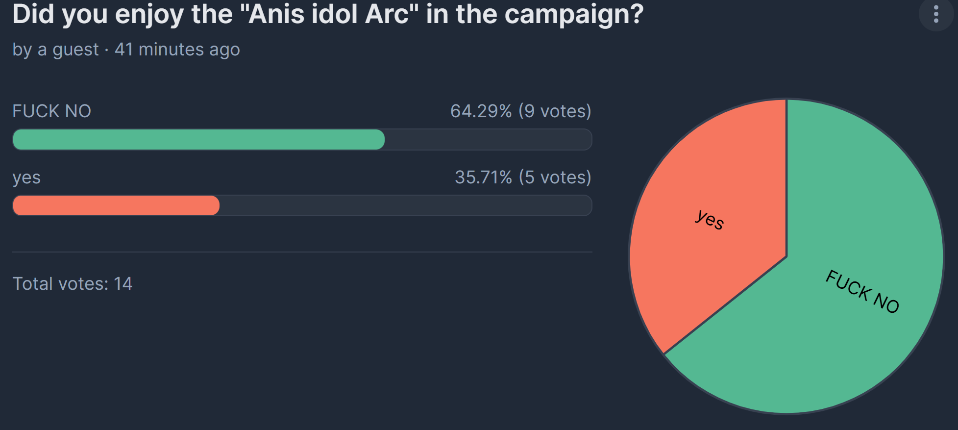 >>557751095>Plotlines have been dropping like flies lately.>side quests dead>lingering plots from the side quests killed in collabs>anni killing plot lines>rushing everything elseayayayay
