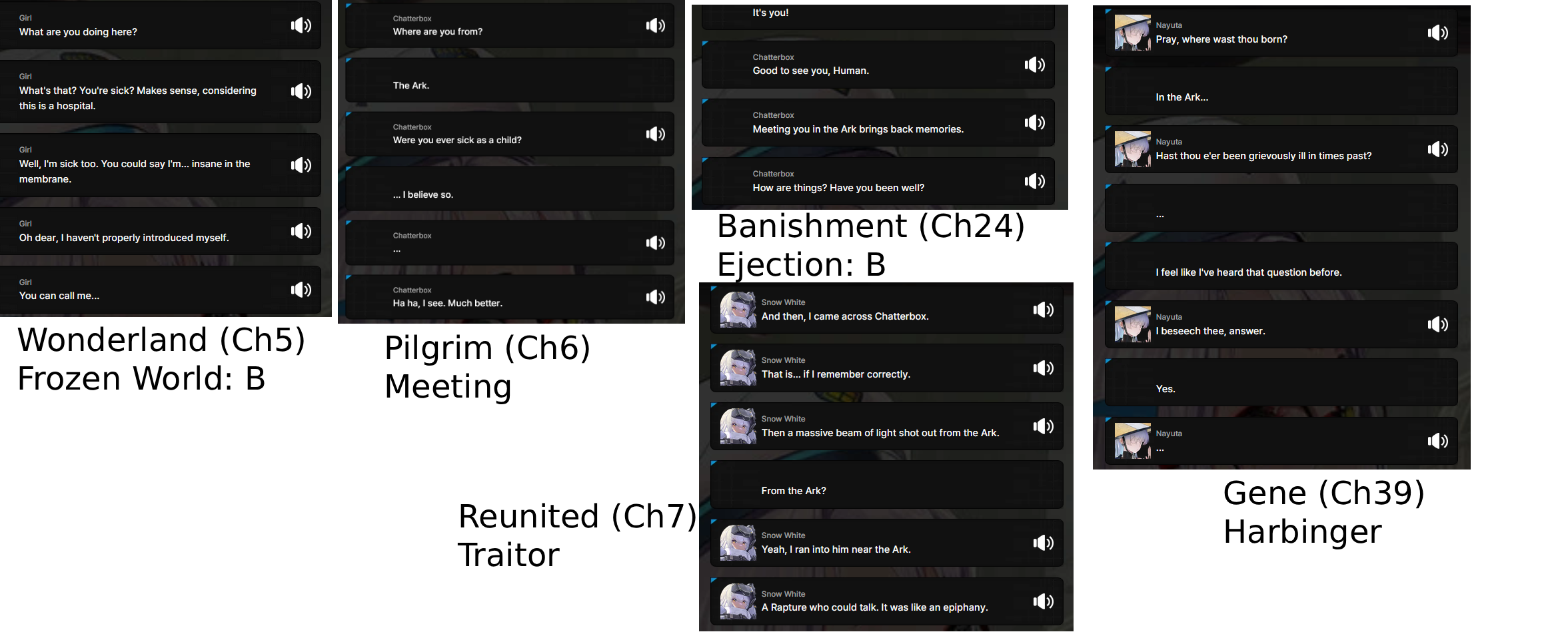 >>557747330>>557747841>>557747167everything about Chatterbox's plot got retconned and attributed to Mirror instead because the fanbase got tired of him not dying.He is a scrapped plotline and we will never learn more about him now