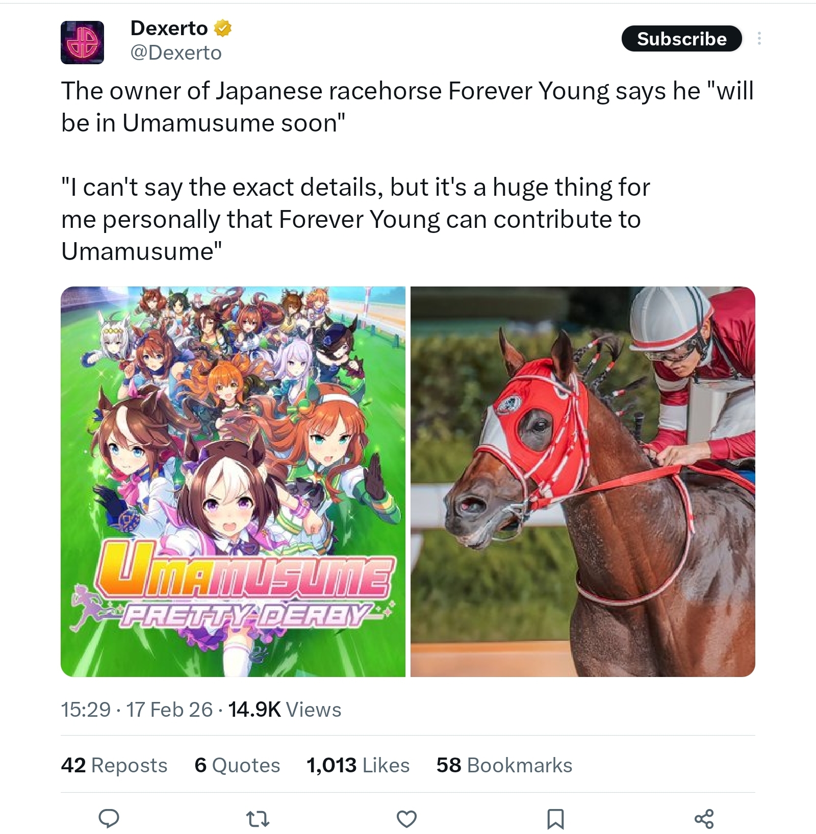 >>557730298>The owner of Japanese racehorse Forever YoungThis is like those ironic Markiplier news "Markiplier slept with Iron Lung Director's Wife to get the role" except Dexerto isn't ironic, but pure retarded.I fucking hate these pages/accounts so much.