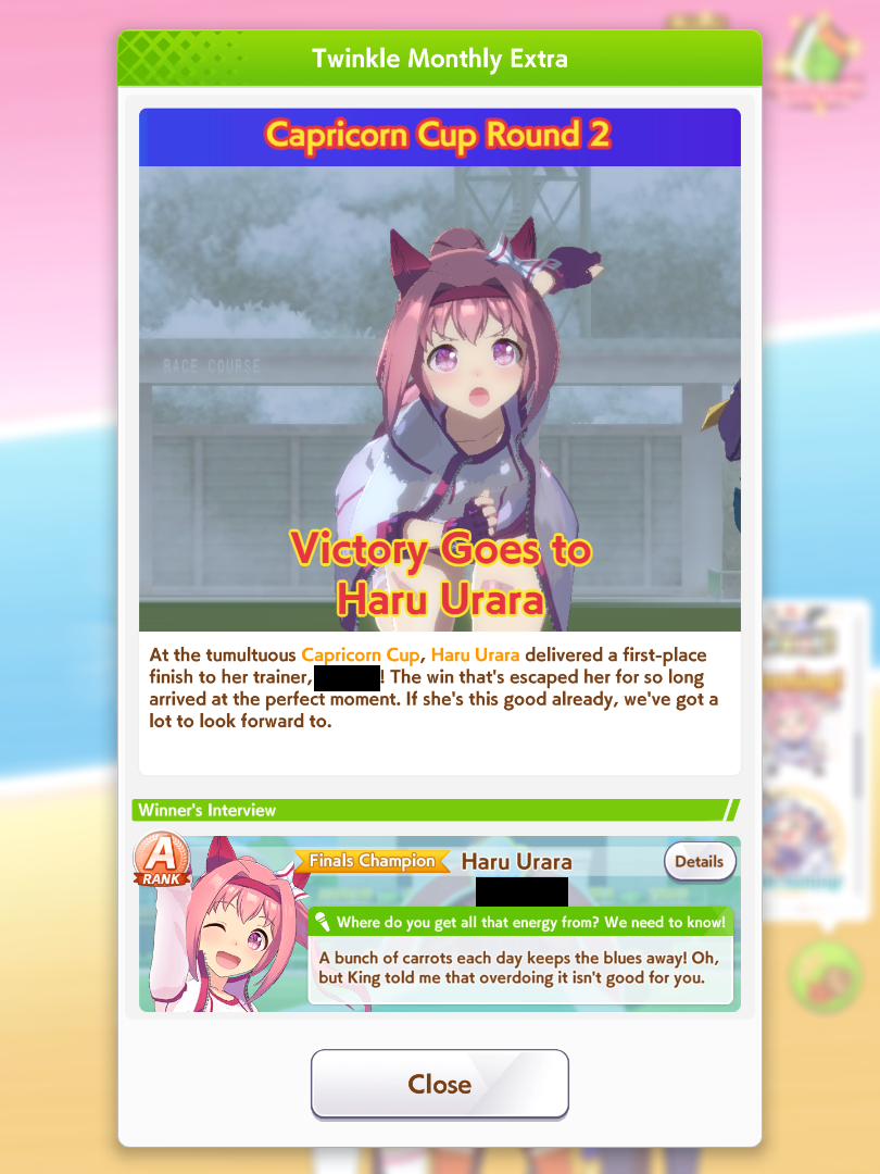 Previous: >>557710582>Global Game NewsLink your account to Cygames iDCurrent Scenario: Aoharu Hai aka "Unity Cup"Current Rate Up Trainee: Sakura Chiyono O (3*)Current Rate Up Support Cards: SSR Sasami Anshinzawa (Pal), SR Tamamo Cross (Guts), SSR Riko Kashimoto (Pal), SSR Tazuna Hayakawa (Pal)Current CM: Capricorn Cup - Chukyo Turf 1200mMain Story Chapter 5 is out02/13 - 02/19 - Capricorn Cup - Chukyo Turf 1200mhttps://umamusume.com/news/100040/https://pages.snep.pw/uma/anni-skill-changes/>JP Game NewsCurrent Rate Up: Valentine Taiki Shuttle (3*), Valentine Sounds of Earth (3*), SSR Matikanefukukitaru, SSR Neo UniverseNew Scenario "Yukoma Hot Spring" releasedTimeline: https://uma.moe/timelineCygames Webstore: https://webstore.cygames.com/en/umamusume_en/>Thread Clubshttps://rentry.co/umaglobalclublistYou must be E3 (20k points) to join a circle. Apply with /uma/ or /vg/ in your profile or post ID in the thread.>All Guides & Resourceshttps://rentry.org/uma26Game databasehttps://gametora.com/umamusume (Click the gear to switch between JP / global server info)A basic guide for newfagshttps://rentry.org/umaglobalFind networks if your region is blocked from the game or clienthttps://www.umavpn.top/93Seiyuu & Concertshttps://rentry.org/umstUma Texthttps://umareader.idsmile.xyz/Imagine losing to Urara in sprint CM finals