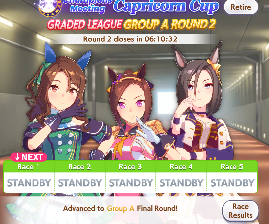 >>557731282Do not forget to manually revert to your aces at midnight, or you will queue up with your TT umas for finals.
