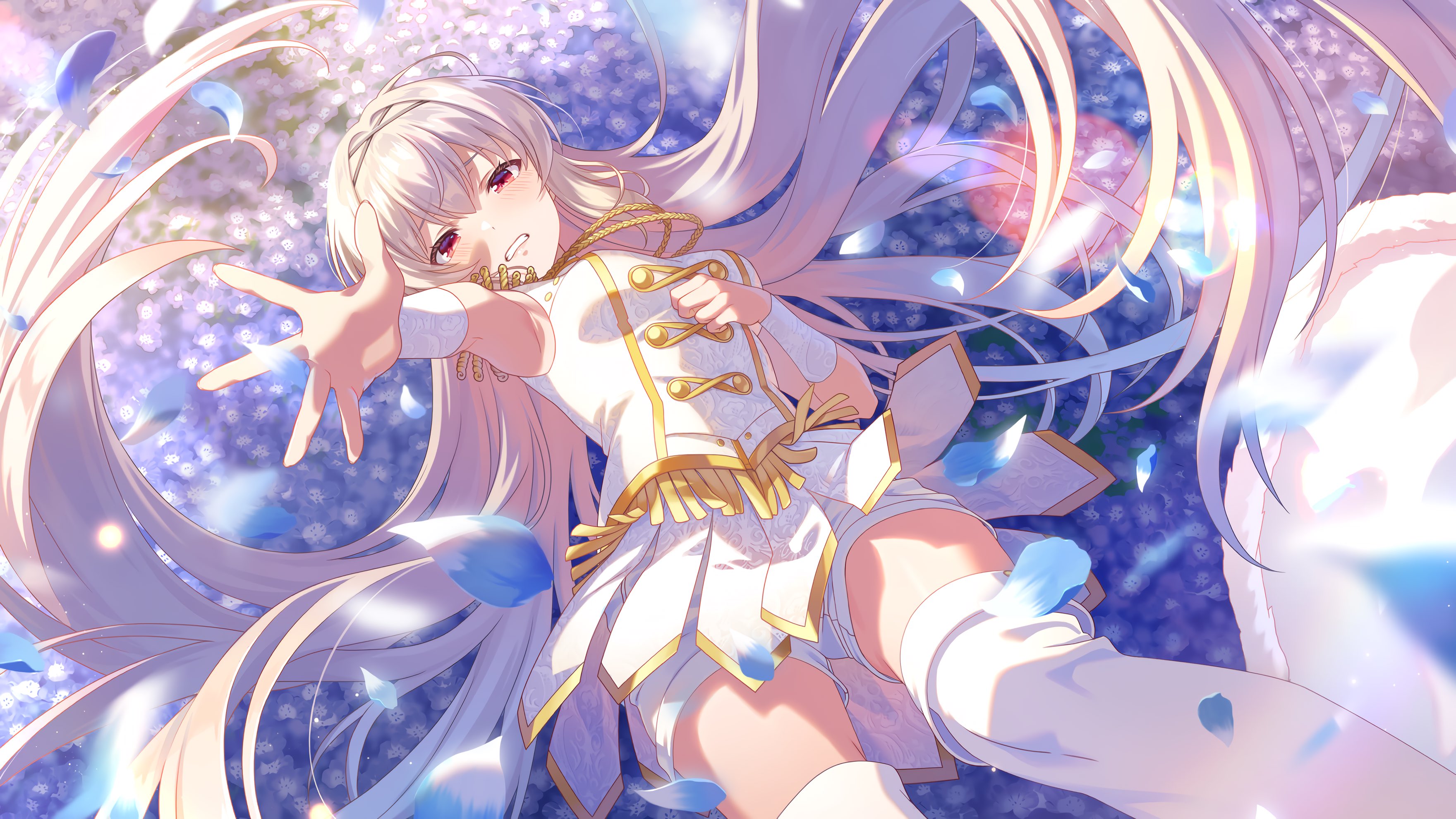 >daiwa SCARLET>RED hair, RED eyes, RED ace unique, classic RED tsundere archtype>blue dress>PEAK BLUE title