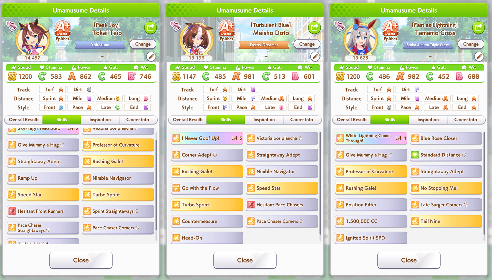 >>557731369I think I made enough 9* parents as a f2pTaiki, Maruzensky, Tachyon, Oguri, Ryan.Thats enough I think.