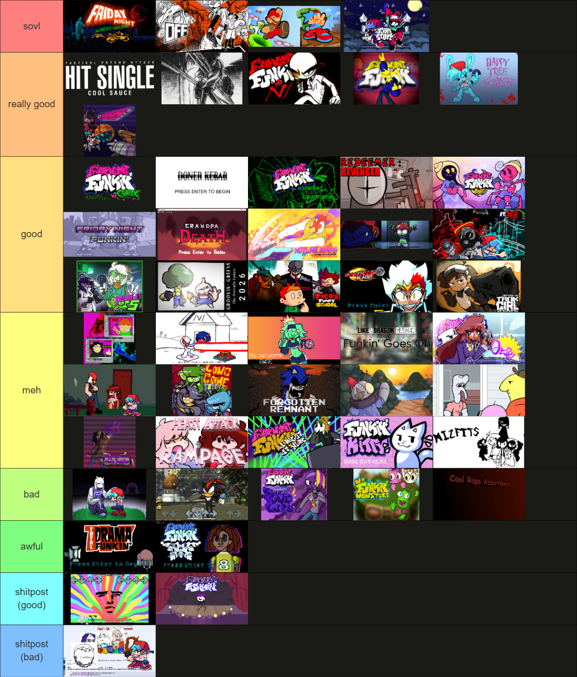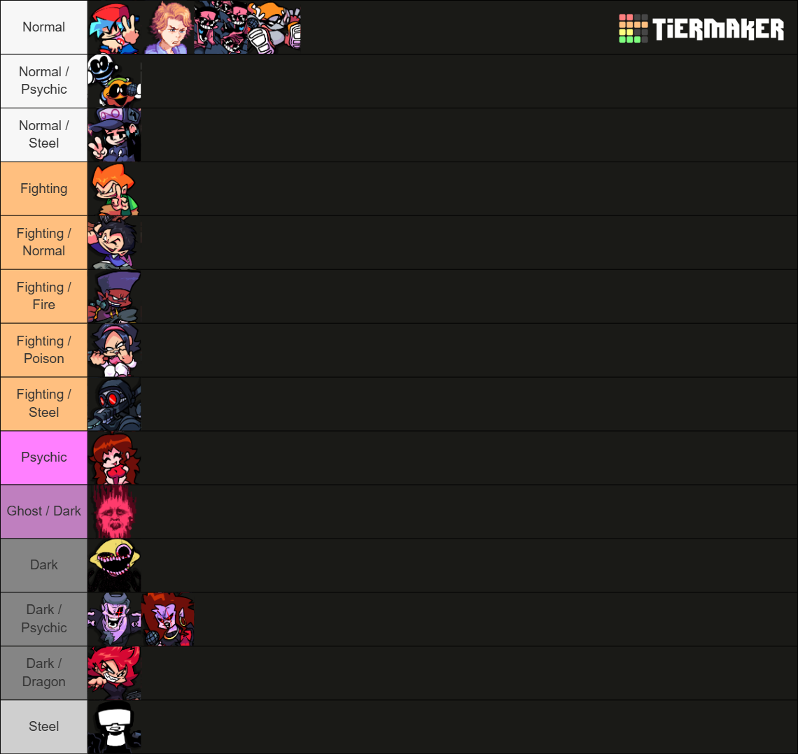 oh speaking of tier lists should I add anything else to thishttps://tiermaker.com/create/fnf-mod-trends-17080688-2newest one is for playable character mixes