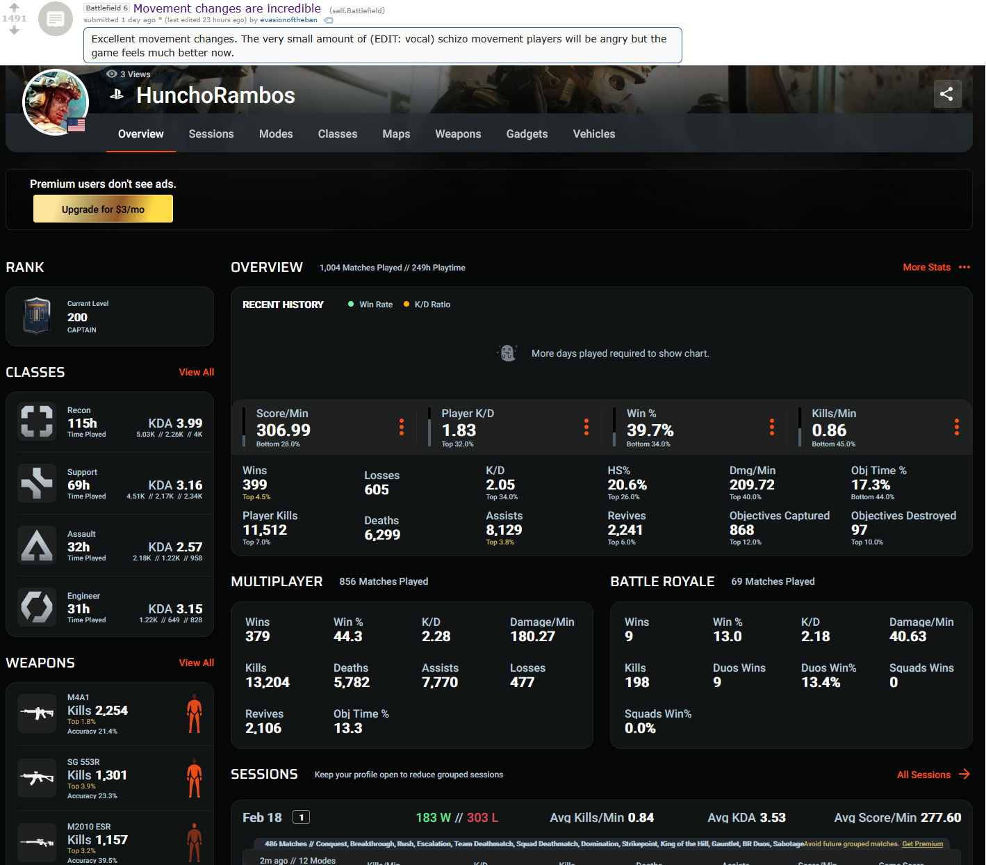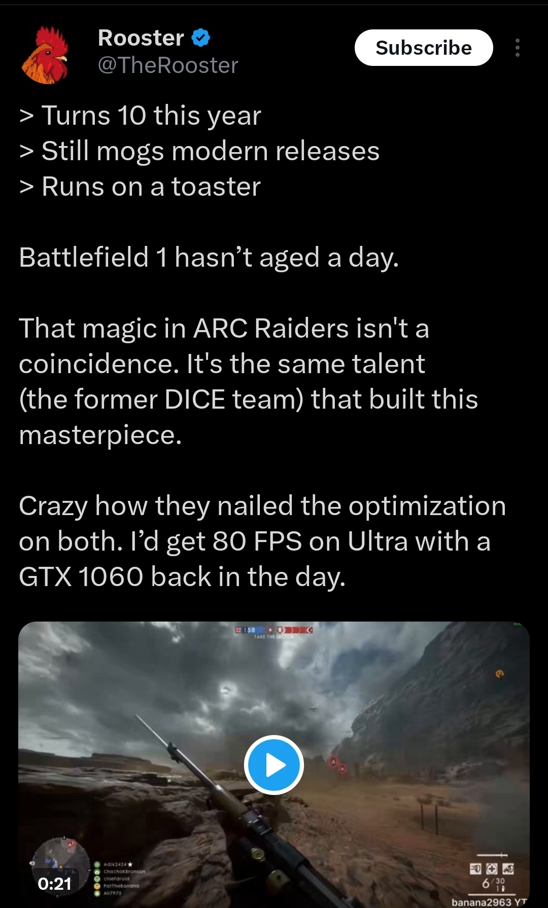 Guy genuinely believed that he was going to be some sort of a big shot BF e-celeb ever since the prelude to 2042.