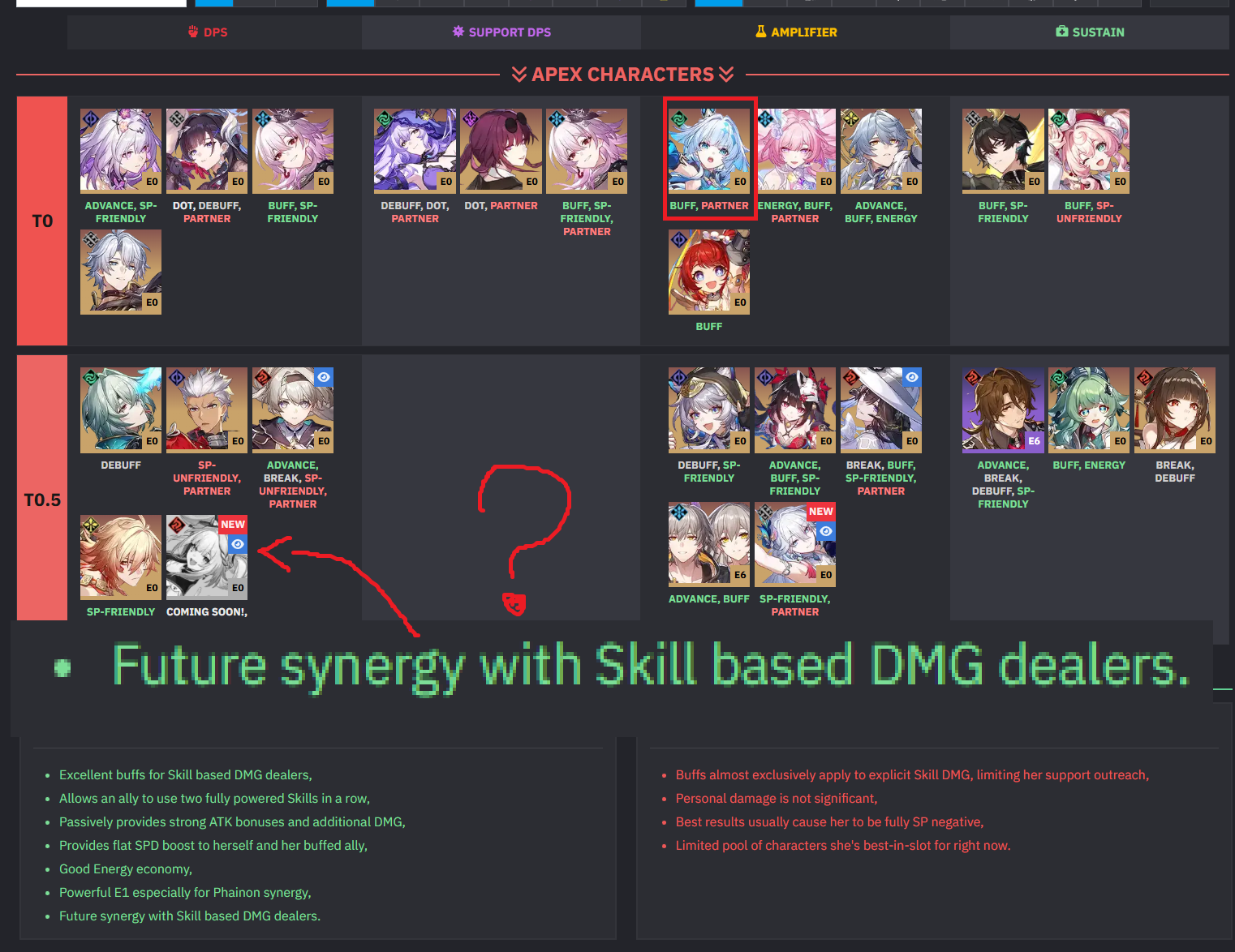 >>557787726Sparxie is a brickRoll E1S1 Yao (E2 is brick you don't need it just extra speed, you can get 200speed easy with cone)Wait for 4.2, sparxie will be first one kicked from yao's elation team.