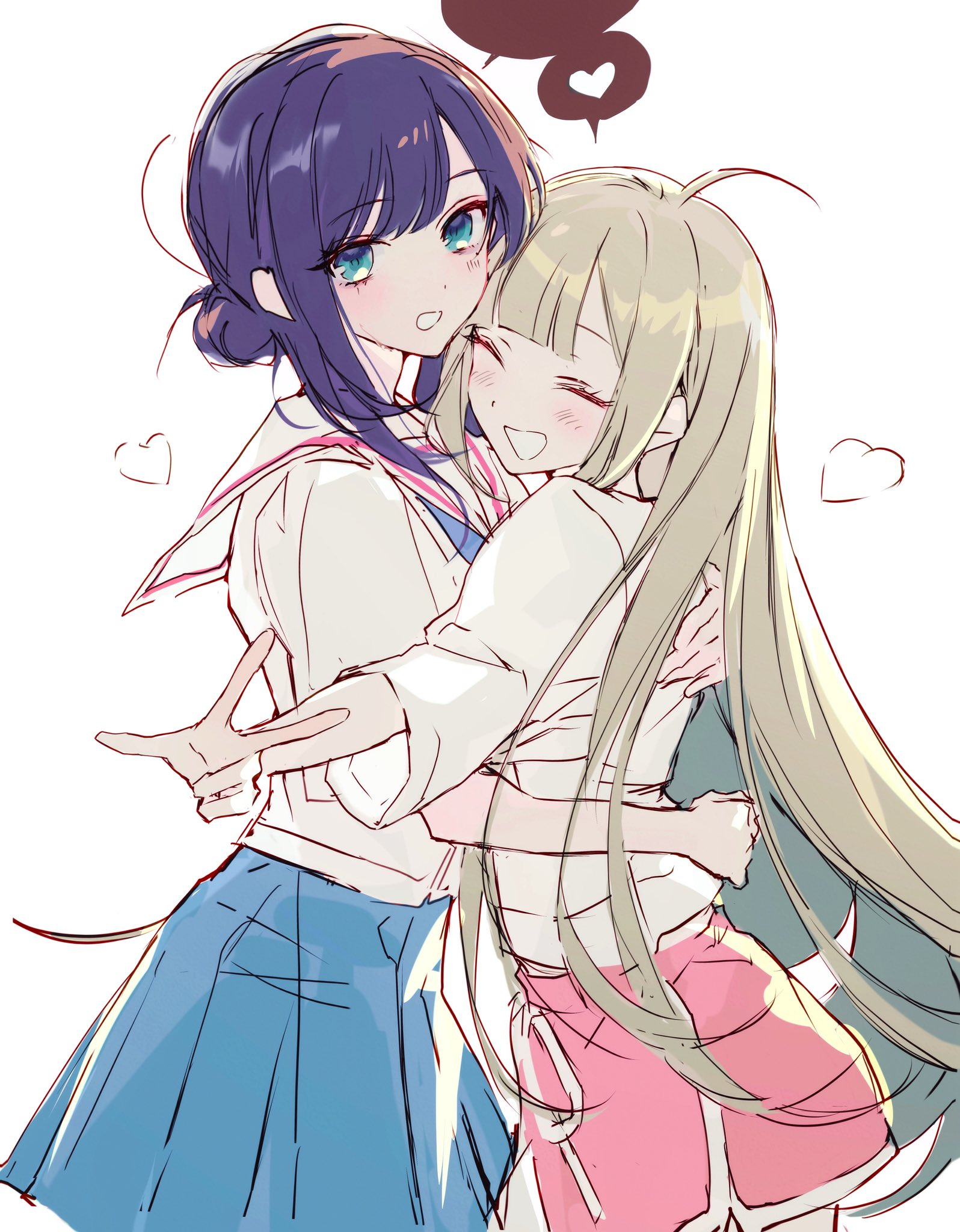 pose a femrar and sunnie cuddling but they are wearing clothes