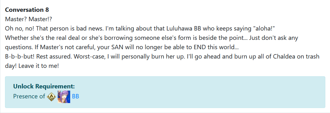 Then yeah, even if you like her I'd honestly only go for NP1 this time around. I'm just going to guess if you want Aoko you probably are also rolling for CIEL later, who would definitely benefit more from extra NP levels if you're gonna splurge on anybody.