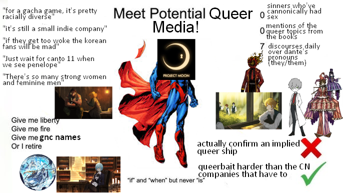 >Oh man, Yi Sang is gonna distort from that Bough to the heart>Ishmael is gonna distort into some sea beast for sure>Come on, it's gonna be Cathy who distorts, she's the menhera one>Don is gonna manifest EGO for sure>There is no way Hong's not gonna snap, look at the Reindeer ID, he's holding back his WRATH>okay Ryoshu just HAS to distort when her daughter gets burned, right?YOU ARE NOW HERE>Meursault's totally gonna distort, why else would he be familiar with Carmen's sunlight in the Arknights collab?>There's no way Outis doesn't distort after finding the Odyssey had no purpose>Faust has literally no reason to distort, are you dumb?