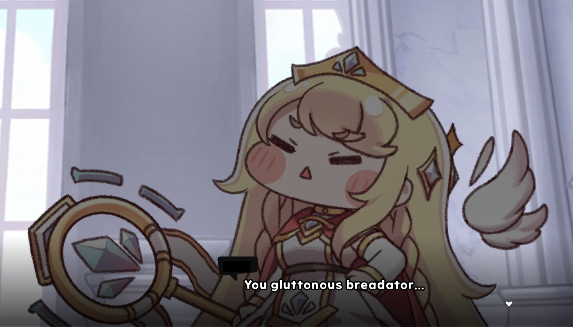 What is Goldy saying when you pet her? Her flustered and confused reaction is very cute.
