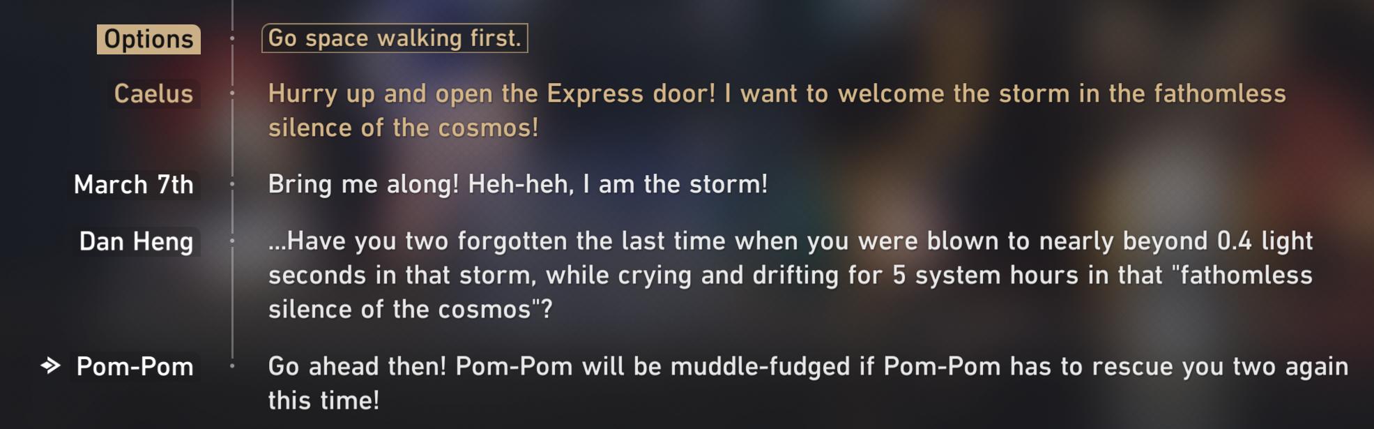 >>557831470It's not a meme she is a friendless loser, her "friends" at the tavern talk shit behind her back and to her face. Judging by what Sparxie said she probably kept blabbing about how much fun she had with just you in Penacony since everyone else there ranges from being 'only obligated to help her because of a deal' to outright hating her.
