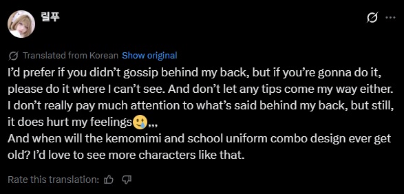 >>557829245She's a cosplayer and a woman, women are talking shit about each other all the timeI doubt she'd give a fuck about some westoids saying they don't like puffy eye makeup