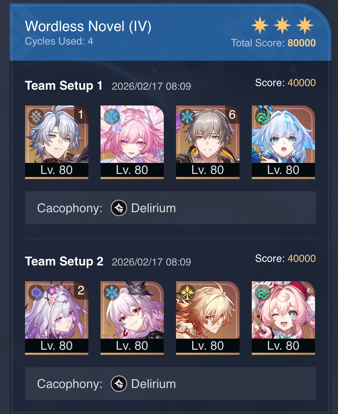 >>557832486I did some testing on Knight 1 the other dayHysilens/Kafka/DanHeng/Robin = 4 cyclesBuff Swan/Kafka/DanHeng/Robin = 2cycles