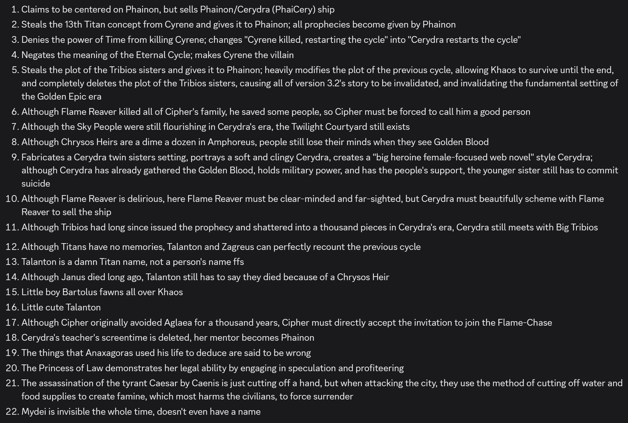 >>557843702I don't care about the Cyrene thing but erasing Mydei to the point he doesn't even have a name is hilarious