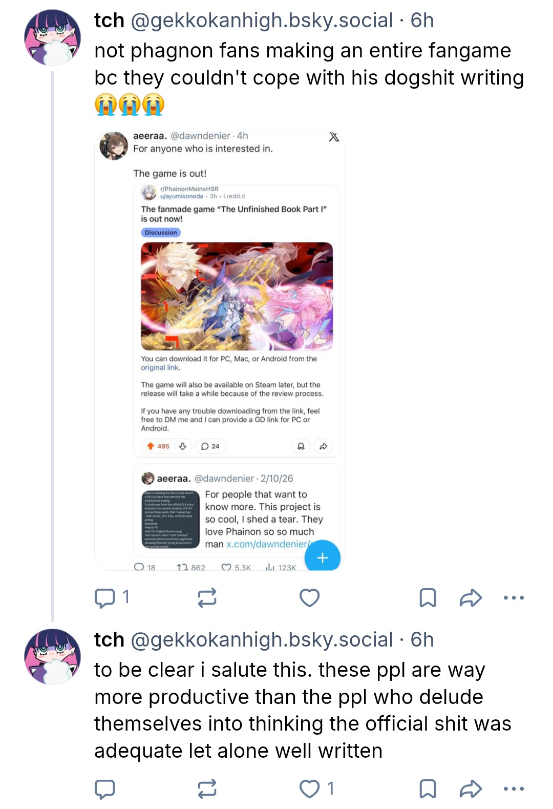 >Most CH fans making fun of the phainon fangameI do nothing and I win.