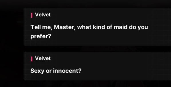 >>557852737I just did this. I chose "Innocent" and Velvet's response was, "Oh so, you like Ade more than me?"And, yes, I do.