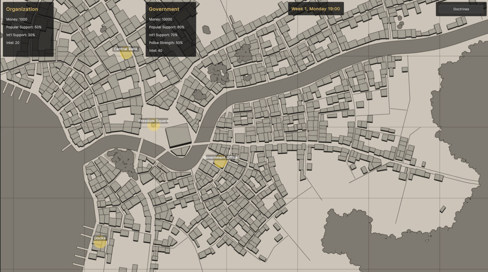 A game where you manage an underground political organization. Choose pacifism (propaganda, protests etc.) or violence (bombing, assassinations, kidnappings etc.). 2D, mostly map based, UI clicking, mostly text but not wall of texts, roguelike. A doctrines tech tree similar to the thoughts in disco elysium. Recruit agents, send them on missions, see the possible outcome chances beforehand, similar to event popups in CK3. Basically risk management.Anon said sounds like a flop. Does it?