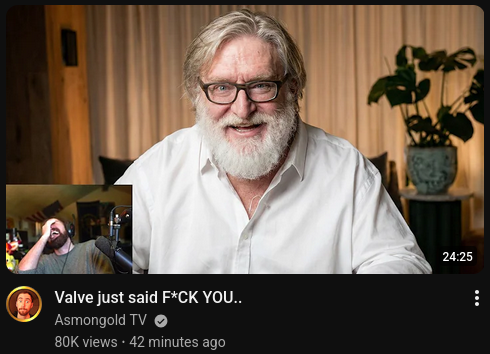 >>557841791 (me)I should also add that the addition of Early Access to the store and the subsequent lack of accountability for developers for abandoning games in EA is also not being on the customer side. And no, adding a notice for a lack of updates is not good enough accountability.There's also the paid mods fiasco where gabencunt personally tried to push it and only backed down until the backlash got too severe. He tried to spin it as "encouraging better mods" but the reality is that he just simply wanted to monetize the Workshop and earn even MORE money through the hypothetical sales cut. And also the fact that they don't check Steam games for having malware, as some recent controversies showed. That's basically 0 basic quality control. I don't know in what universe having absolutely no kind of quality control is considered "pro-consumer".>>557842506>including the places where they aren't legally required toBecause they didn't want to potentially run into similar legal issues in other countries down the road. You're incredibly naïve.