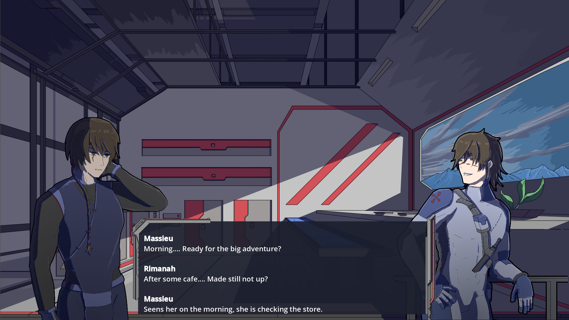 >>557957225You probably need a copywriter. Maybe AI, maybe volunteers or fans of the game, maybe something else.This Reddit thread mentions AI:https://www.reddit.com/r/gamedev/comments/1mow38n/game_localization_on_a_very_tight_budget/For that scene specifically (I am ESL, FYI):Rinnah:>After some coffee.... Made still not up?Massieu:>Saw her this morning, she is checking the store.