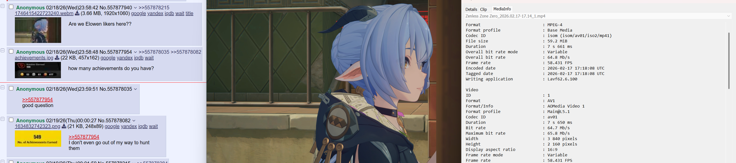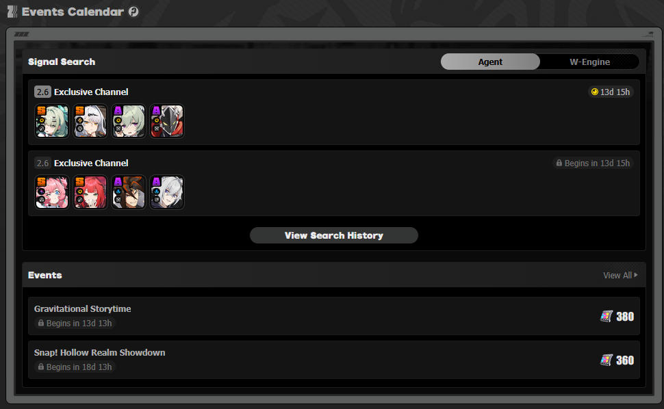 Previous: >>557834651>NewsAgent Record | Cissiahttps://www.hoyolab.com/article/43750810Agent Record | Nangong Yuhttps://www.hoyolab.com/article/43737155Version 2.6 "Encore for an Old Dream" Special Programhttps://youtu.be/oTRy9pZ4TYE>Newest Trailer/Teaser/Character demohttps://youtu.be/0DmndMnuh5E (EN)https://youtu.be/TJXSiIESLyc (JP)https://youtu.be/06G8YgOrXTw (EN)https://youtu.be/FJ0HD6RC6PY (JP)>Upcoming Events for 2.6https://zenless.hoyoverse.com/en-us/news/162561A Harmony of Delusions 02/05 - 03/23Angel's Invitation 02/05 - 04/15Delusion Special 02/05 - 03/23Potential Hypothesis: Frosted Feathers 02/05 - 03/23Livestream for Fluttering Wings 02/05 - 03/23Gilded Surprise, Wonderful Boo-ns 02/14 - 02/25Stacking Fortune 02/16 - 02/24Advanced Bounty: Area Patrol 02/25 - 03/02Gravitational Storytime 03/04 - 03/23"En-Nah" Cheersquad Gift 03/04 - 03/23Snap! Hollow Real Showdown 03/09 - 03/23High Score Card Collector 03/16 - 03/23>Redeemable codes (claimable in-game or online)https://zenless.hoyoverse.com/redemptionZENLESSGIFTZZZ25MINAZHAOISFREEShunguangWinterGiftZZZ20265OZ2HDP95IZZZANGELSZZZ26DELUSIONAODDEBUTZZZAOD0206ZZZCREATOR26ZZZCUTENESS>Resources and useful linkshttps://rentry.org/zzzlinkshttps://rentry.org/ZZZ-Friendshttps://rentry.org/ZZZ-Guilds>/zzz/ OP pastebin (use this if making new thread):https://pastebin.com/PzbMf13P