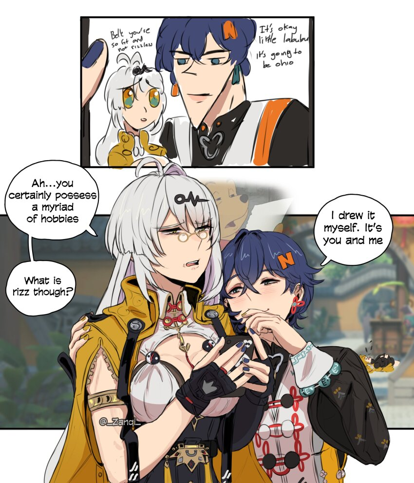>>557913261Belle is more fun. She has gremlin energy. Wise is just your typical male MC who rarely shows much emotion.