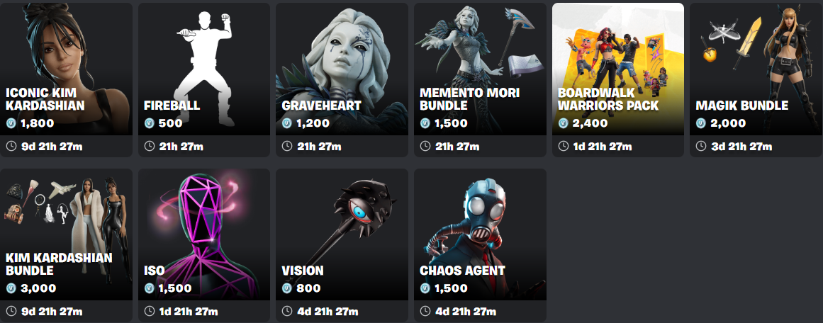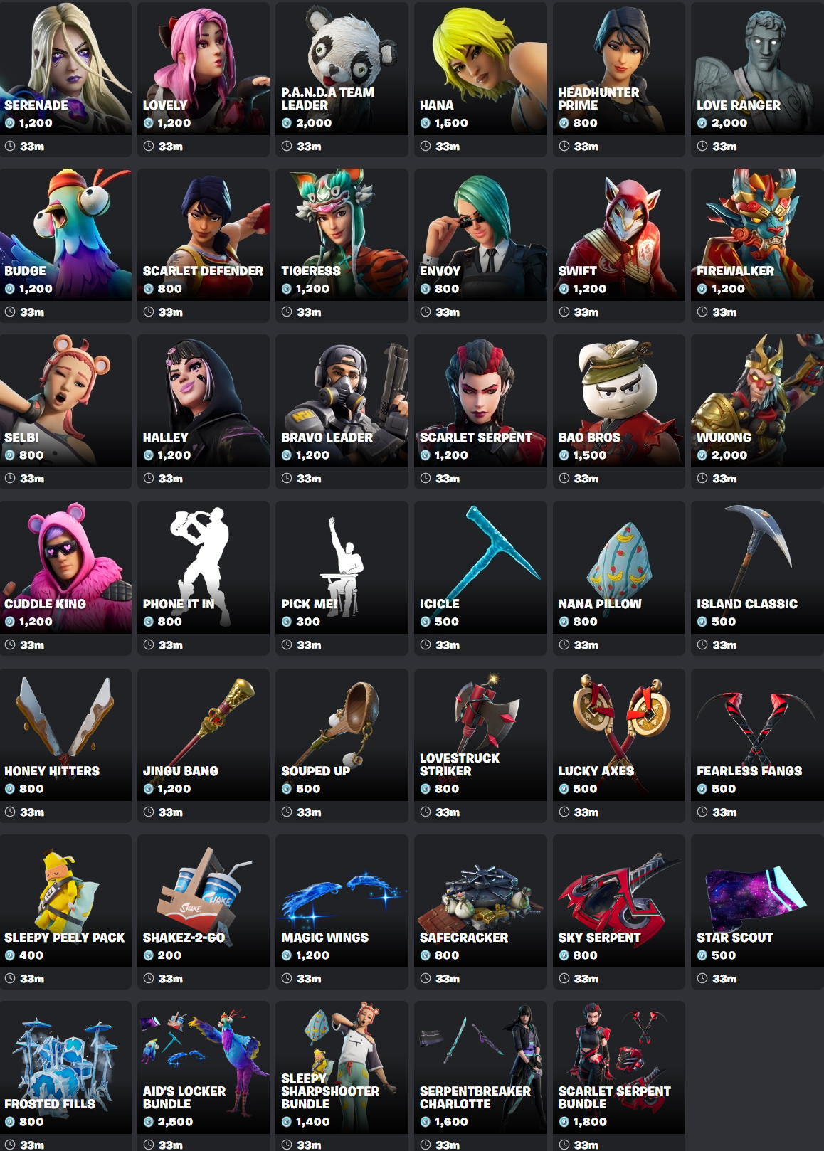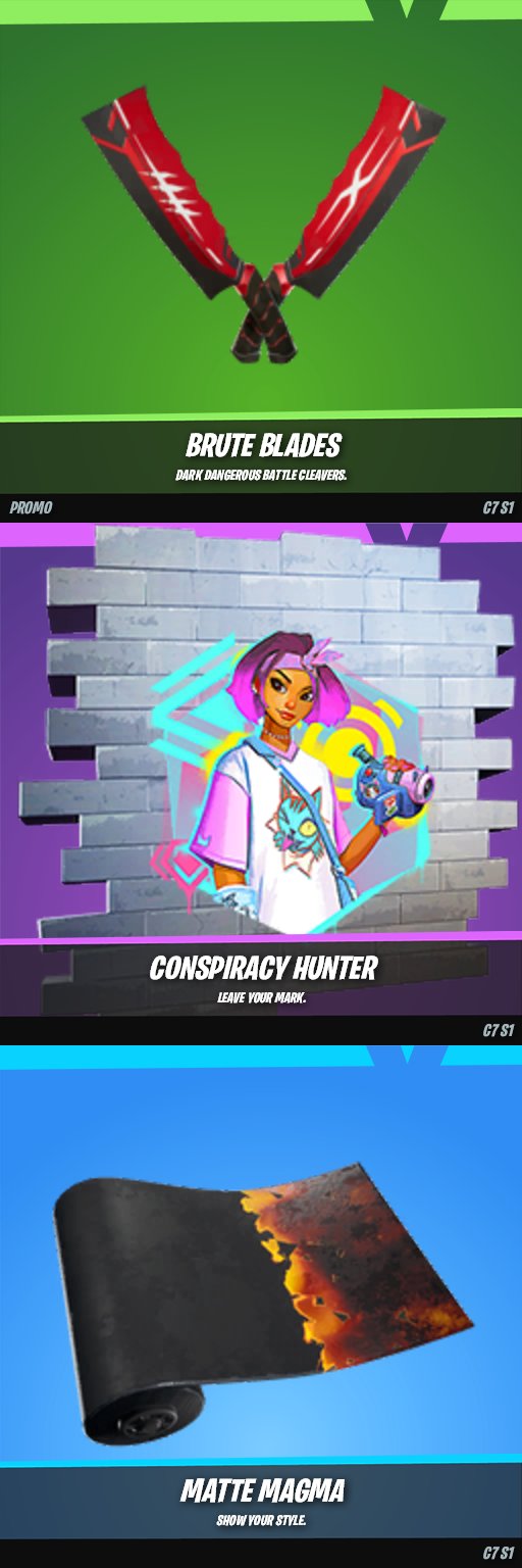 tonight>Fortnite Drops (x3) [ID: FND0219]>Love and Legends (x5) [ID: Valentine0219]>Lantern Fest (x1) [ID: LanternFest]>Ford Bronco Raptor (x1) [ID: FordBroncoSUV]>Battle Ready (x7) [ID: BR0219-2]