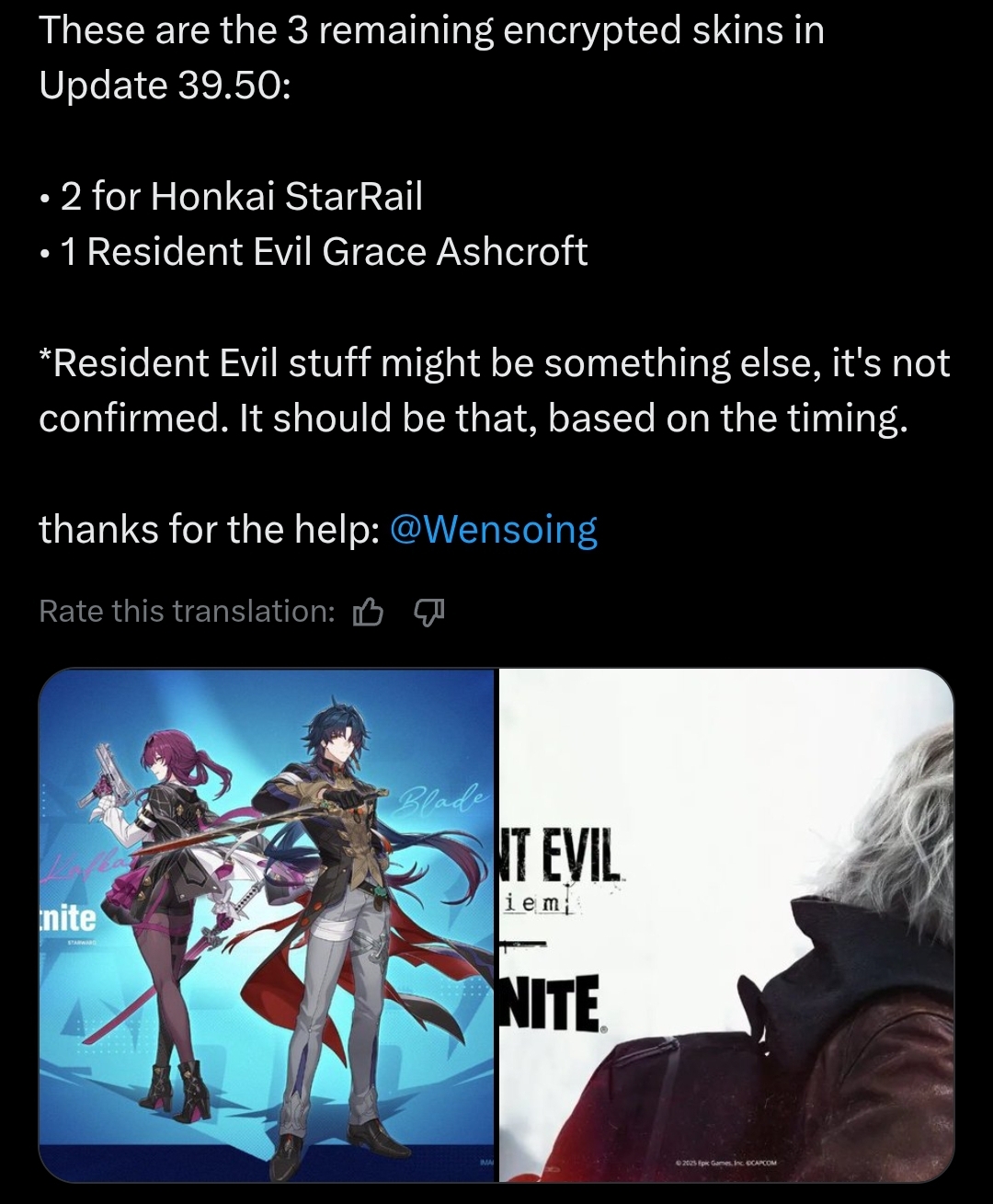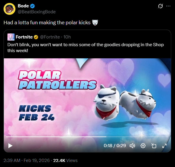 https://x.com/The_Ben_Starr/status/2024515207775633510>I’m joining Fortnite as The Visitor.>I’m so excited to bring back this iconic member of The Seven. I imagine I’ll be very normal about it.Tim should convince him to talk to yoshida about a ff16/ff14 collab now