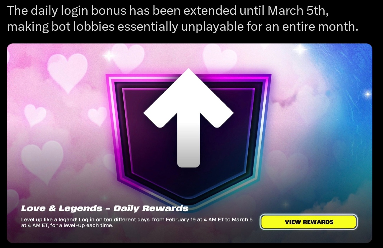 >>557944274>Remember to say thank you to Clix!what a fucking joke, so that's why everyone reset to bronze a week ago. fuck you epic, I would be gold by now.