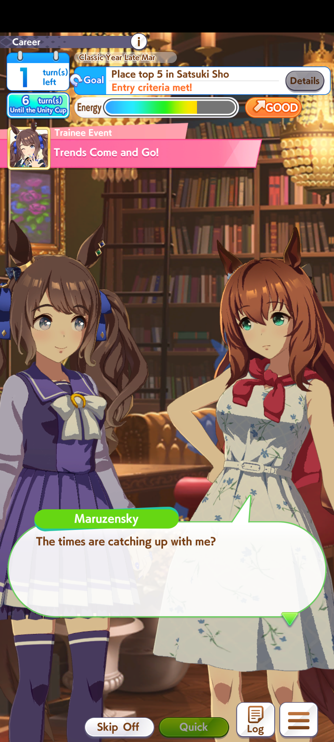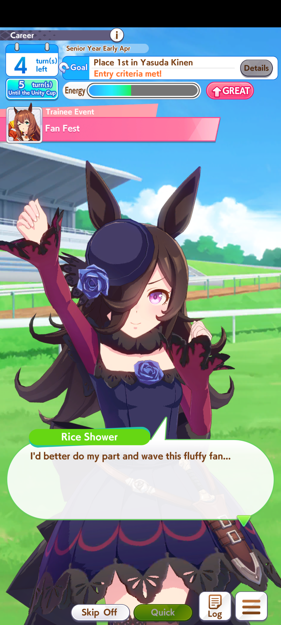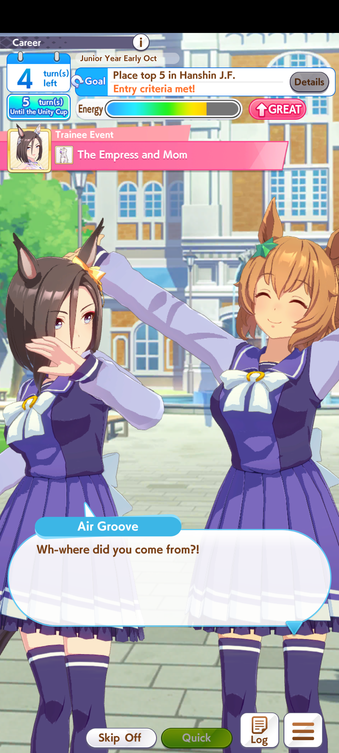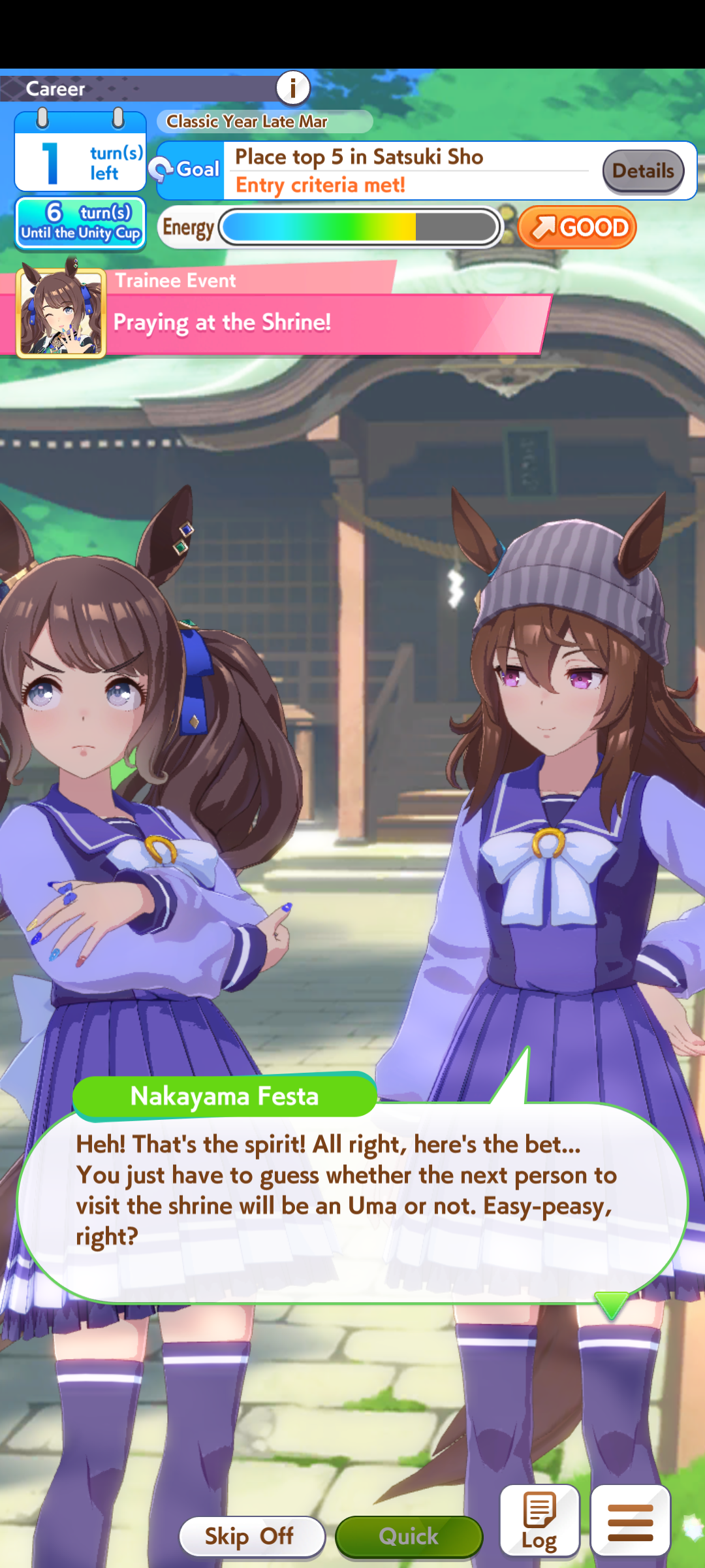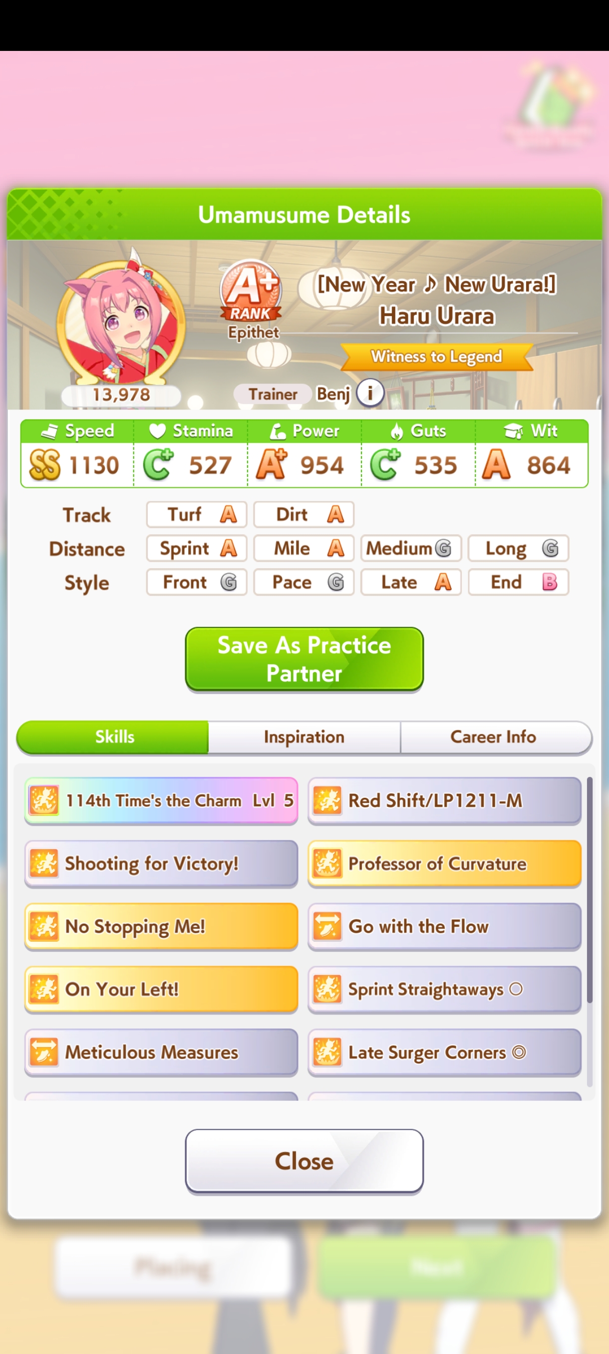 >>557912853greens are bad because>TT track conditions are kinda random so they might not even activate>double circle is bad investment of skill points>They give low points on activationWit give you better position checks among other minor things, which lets you get bonus points during a certain part of the race if you were able to fight for the top position of certain styles. That's why the best TT teams run 3 different positionsWit also increases your skill activation. It feels small at higher values, sure, but it's much better when you look at whiff chance reduction instead of activation chance increase. And activating all your skills in TT is good, yeah