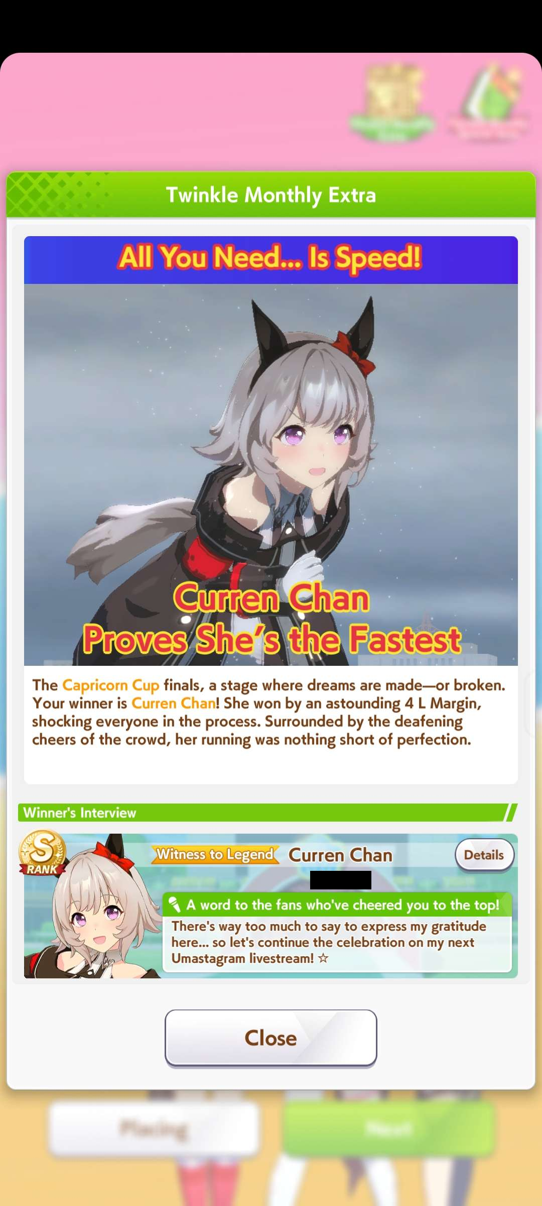 >ready to spark for XOguri>got her in 30 pulls>ready to spark for VBourbon>got her in 5 pullsI just want to expand my stable man... I guess the next target is Kitasan or Nishino, hopefully I can spark them