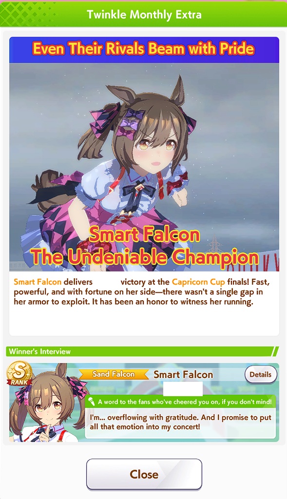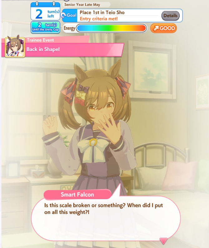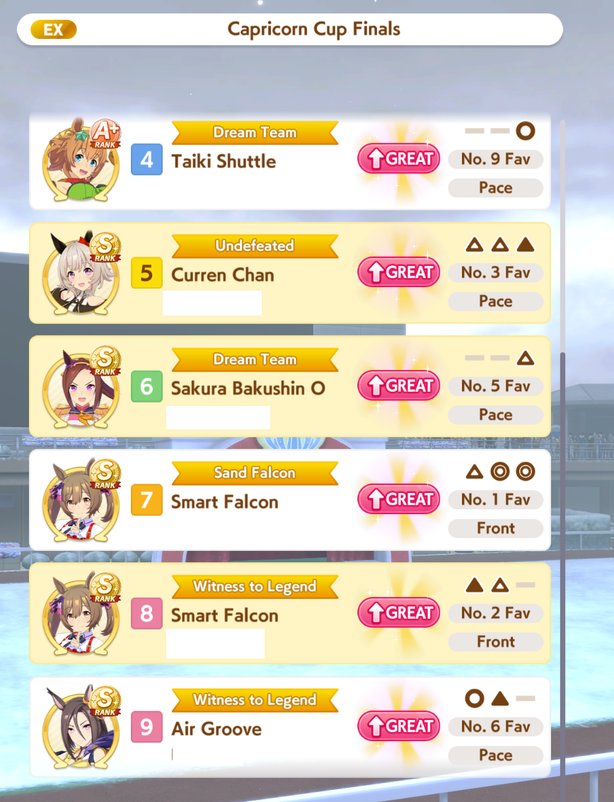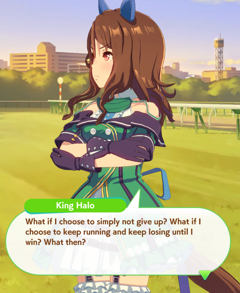 >have an 80% WR>go in the finals confident>look at opponent Umas>"there is no way I can lose to these">opponent Umas pull off some miracle bullshit>lose>have an 50% WR>it's never been more over>look at opponent Umas>"What the fuck are these S-ranks, it'll be a miracle to win">my Umas pull off some miracle bullshit>winThese have literally been all my CMs. I'm on to CyGames' bullshit.