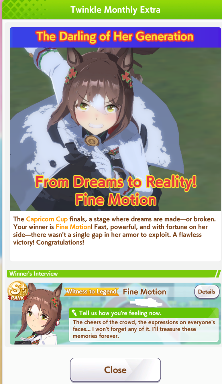 >>557896729>>557896890I blew the spark on Fuku instead and got 3LB, not bad. The all uma banner was kinda braindead to me because I don't have any specific past umas that I want so might as well spend a spark on a banner that actually has rate-up that I want