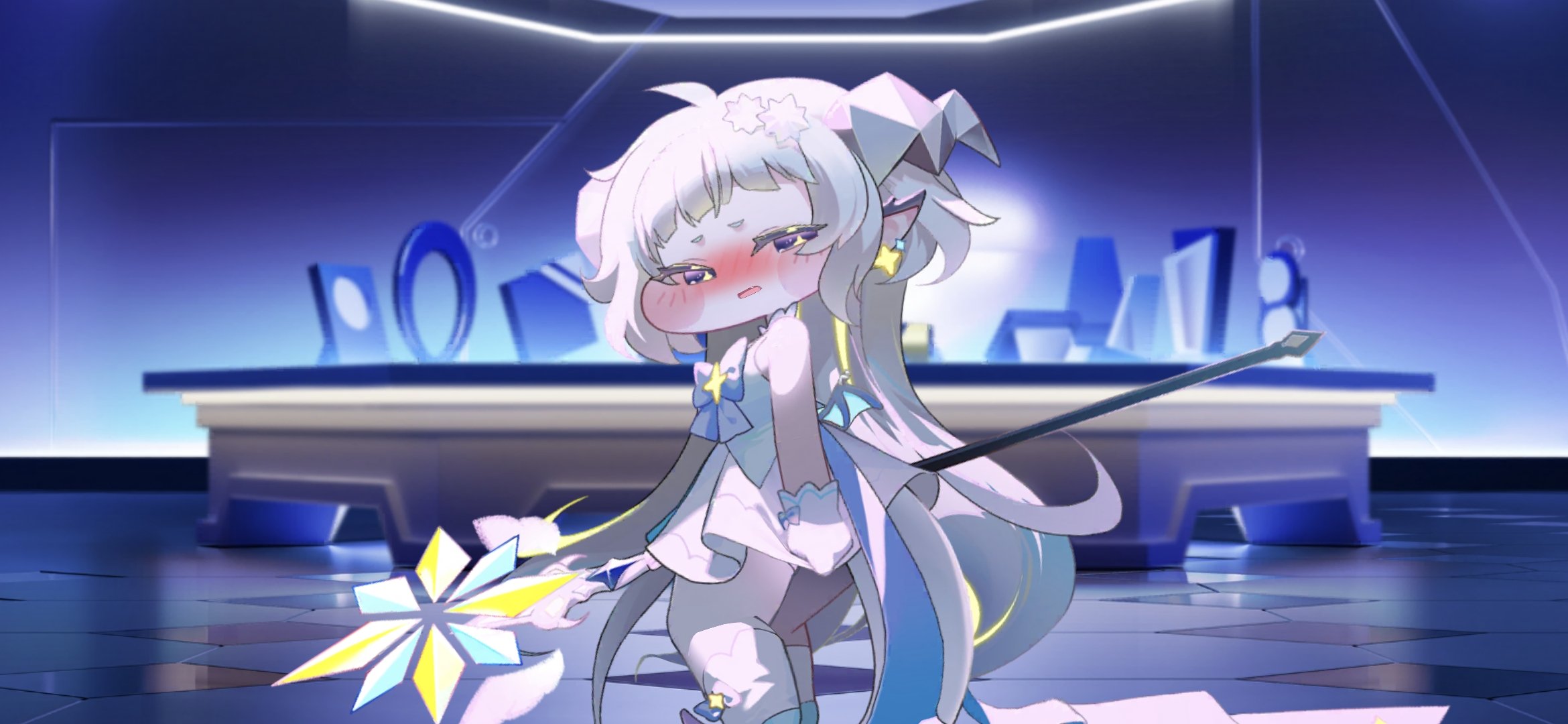 I just saw this look on Epica's face while doing my dailies and it made me pause. For a second I was enchanted by her expression and forgot what I was doing. She looks so smug and confident, it's the kind of face you might make after clearly refuting somebody's argument and they fall apart and concede to your superiority, broken and bent to your will. It also has an air of condescension, like she is looking down on you as if you were a lower lifeform and completely inferior to her and that your thoughts, opinions and feelings mean as much as the buzz of a little fly. It's out of character for her to be so mean spirited but that's what made me think of a scenario where she would look at you like this. Maybe Epica caught you undressing or coming out of the shower or exiting a cold body of water and after the initial shock of that moment her reaction turned to this when she's seen something she wasn't supposed to. She discovers you have more in common with their smallness and chibi bodies than you let on, something that no other Apostle knows about and it changes the way she treats you just a little bit. Maybe some playful teasing and some innuendos that fly over the heads of the other Apostles but now that she knows your "little" secret she feels a little closer to you.Really makes you think...