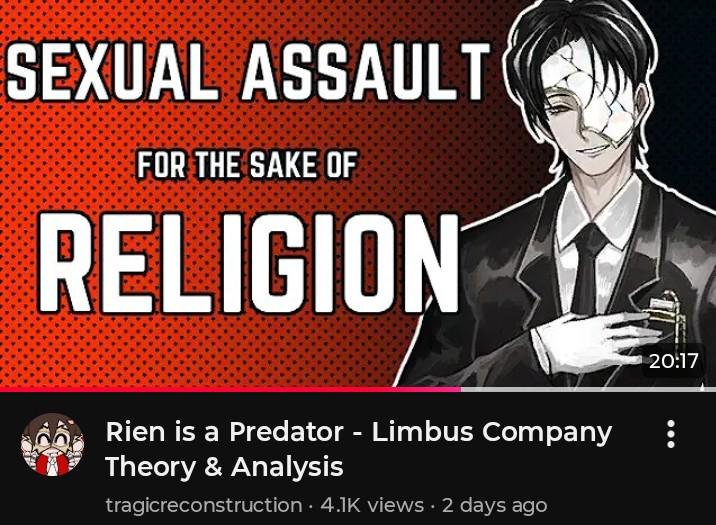 >>557931775I didn't watch the vid but I think the conclusion was supposedly>Rien only kills himself in the end because he has no one left to rapeor something equally unhingedWell... Rien probably did commit a lot of atrocities, but I doubt the prescripts ever let him "have fun" except when he had his family for the Roland LARP