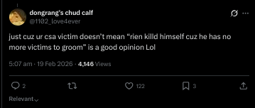 How can we go on without this man going "holy chungus in the city" and then calling us rapists when we disagree with something. I am considering... ending my life without his gimmick account.