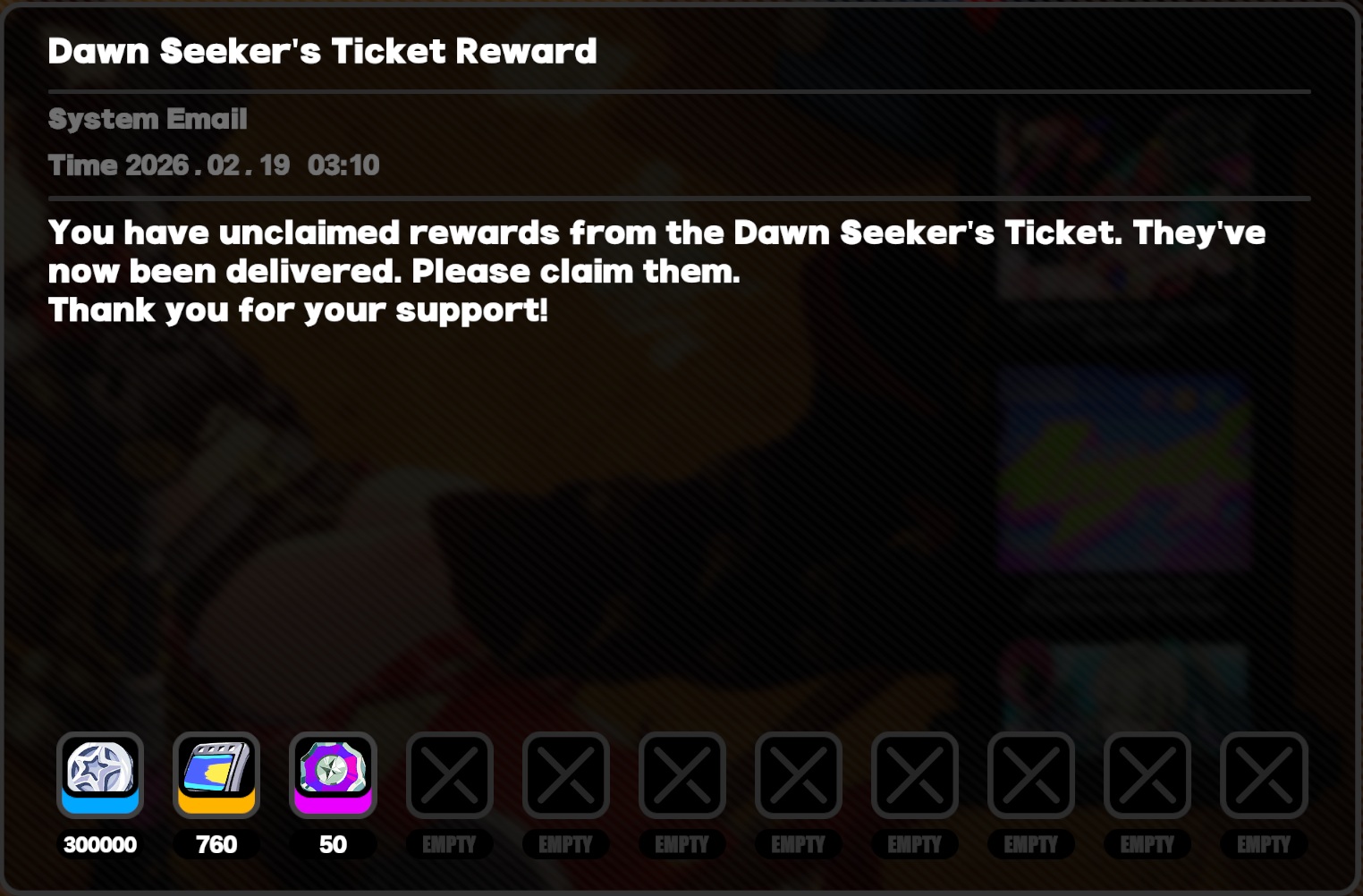 Previous: >>557869929>NewsAgent Record | Cissiahttps://www.hoyolab.com/article/43750810Agent Record | Nangong Yuhttps://www.hoyolab.com/article/43737155Version 2.6 "Encore for an Old Dream" Special Programhttps://youtu.be/oTRy9pZ4TYE >Newest Trailer/Teaser/Character demohttps://youtu.be/0DmndMnuh5E (EN)https://youtu.be/TJXSiIESLyc (JP)https://youtu.be/06G8YgOrXTw (EN)https://youtu.be/FJ0HD6RC6PY (JP) >Upcoming Events for 2.6https://zenless.hoyoverse.com/en-us/news/162561A Harmony of Delusions 02/05 - 03/23Angel's Invitation 02/05 - 04/15Delusion Special 02/05 - 03/23Potential Hypothesis: Frosted Feathers 02/05 - 03/23Livestream for Fluttering Wings 02/05 - 03/23Gilded Surprise, Wonderful Boo-ns 02/14 - 02/25Stacking Fortune 02/16 - 02/24Advanced Bounty: Area Patrol 02/25 - 03/02Gravitational Storytime 03/04 - 03/23"En-Nah" Cheersquad Gift 03/04 - 03/23Snap! Hollow Real Showdown 03/09 - 03/23High Score Card Collector 03/16 - 03/23 >Redeemable codes (claimable in-game or online)https://zenless.hoyoverse.com/redemptionZENLESSGIFTZHAOISFREE ZZZ2026ZZZANGELSZZZ26DELUSIONAODDEBUTZZZAOD0206ZZZCREATOR26 ZZZCUTENESS >Resources and useful linkshttps://rentry.org/zzzlinkshttps://rentry.org/ZZZ-Friendshttps://rentry.org/ZZZ-Guilds >/zzz/ OP pastebin (use this if making new thread):https://pastebin.com/PzbMf13P