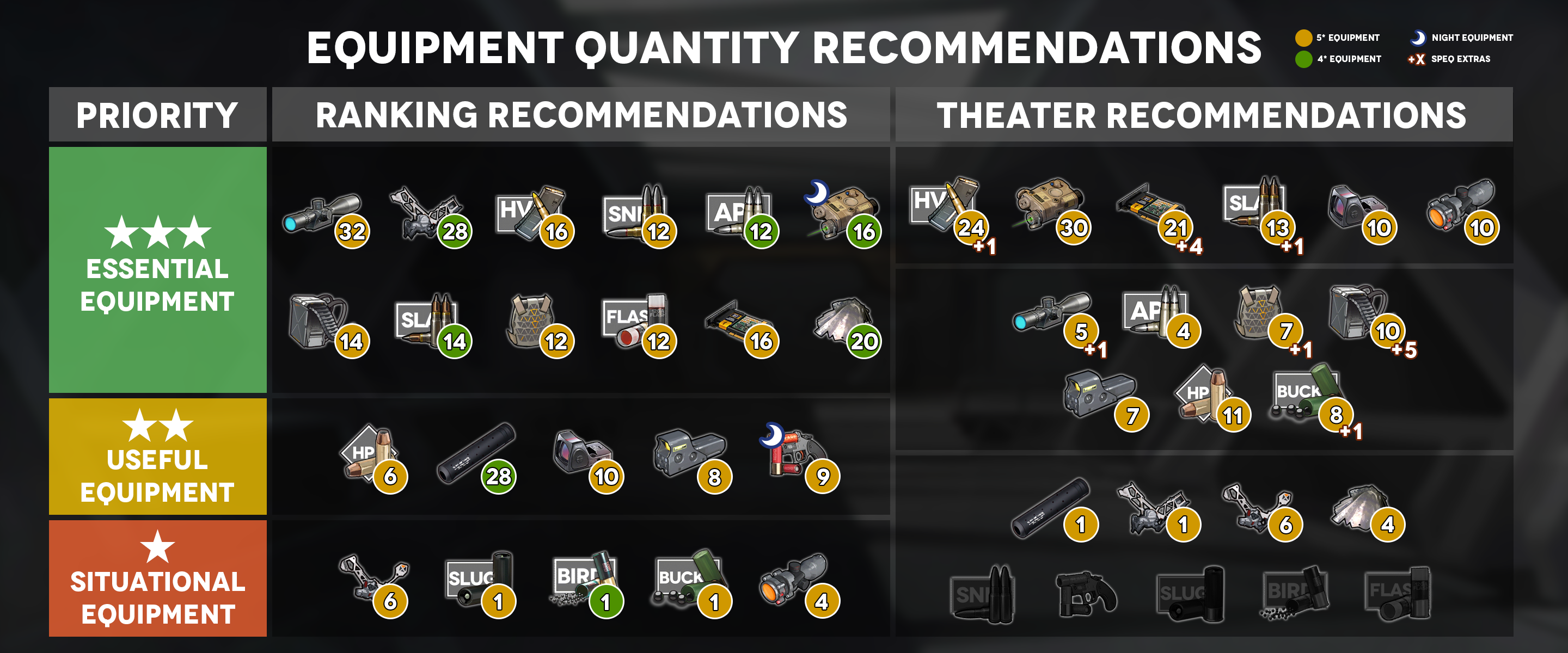 >>557931795Mostly just down to what you needCrit scopes go on mostly everyone other than dolls who need accuracy (SG's want red dots to make sure they hit, some MG's might want holo or red dot depending on their starting acc), AR ammo is always good since it increases damage, and RF's need the AP ammo to pierce armorSLAP ammo for MG's allows them to pierce anything even the super high armor statsAnd you always want all your tanks to have the T-Exo so they don't get chunked by attacks and live longerIf you have any SG's Flashbang ammo is the premiere ammo for them as it reduces the damage they takeAs for the focus chips you asked about, they're barely needed. They're only good on specific dolls and I don't even remember the criteria for it. I only ever kept 2 of them around. The processor chip is much better and more versatile