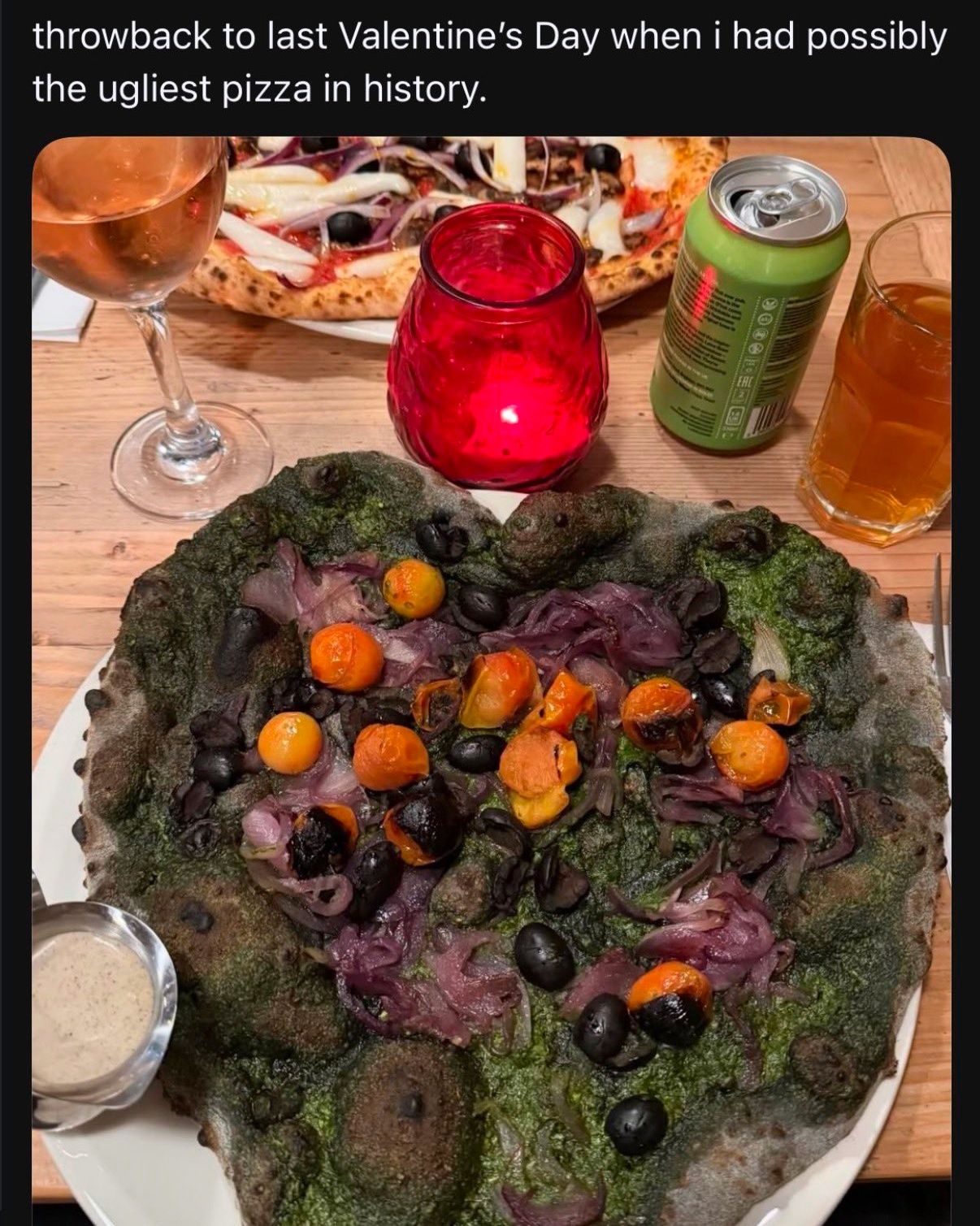 Too much pestoOnions look barely cookedTomato looks like shitPizza dough looks like anemic gluten free shitBet this is an uptown restaurant located somewhere in california