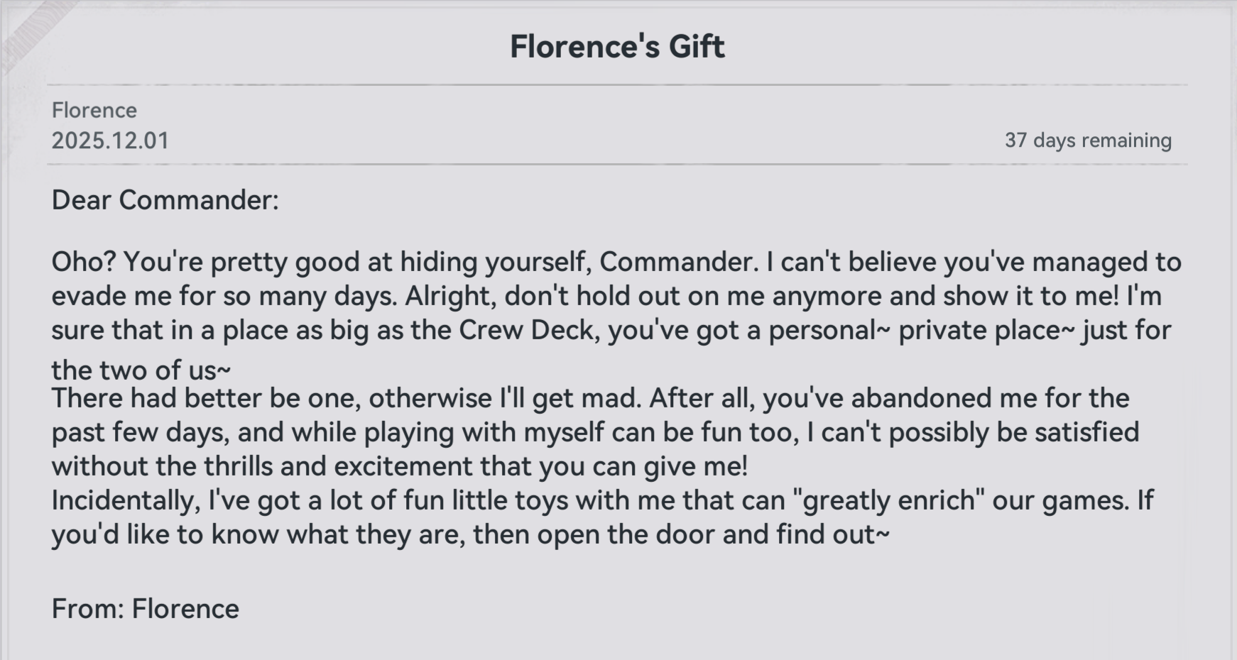 Is it me or does this event not have the usual dailies associated with it?Also, what should I do for the custom procurement thing?Here's what I have:Ullrid Segment 1Daiyan Segment 1Dushevnaya Segment 3Yoohee Segment 2Zhaohui Segment 1Nikketa Segment 1I was thinking Yoohee because for whatever reason ny phys teams feel kinda weak and I'd like more healing (although I guess that won't be an issue soon).Poor Zhaohui is kinda ehhh except on specific mission types, but I guess on th ose being able to teleport the whole team to the objective, especially on heroic mode, would be a lifesaver?Ullrid I just like. She's also not that bad since her upgrades, right? Right?Dushevnaya seems okay-ish as she is, buffing Makiatto and Robella.Daiyan... may be beyond saving.Thoughts?For Alva, should I bother getting any dupes?>>557762993I require context