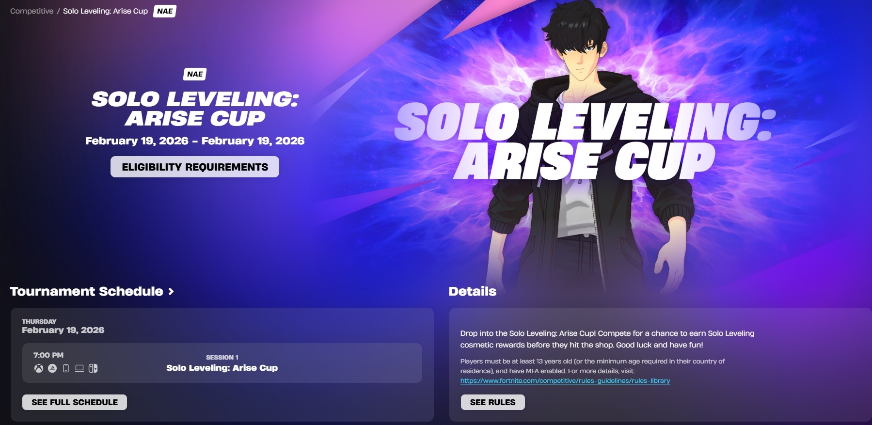 Solo Leveling: Arise Comes to Fortnite>From the weakest Hunter to the Shadow Monarch, Solo Leveling is a story about limitless growth and overwhelming power. Now, Sung Jinwoo and his allies bring that rise to Fortnite.>Will you Accept?