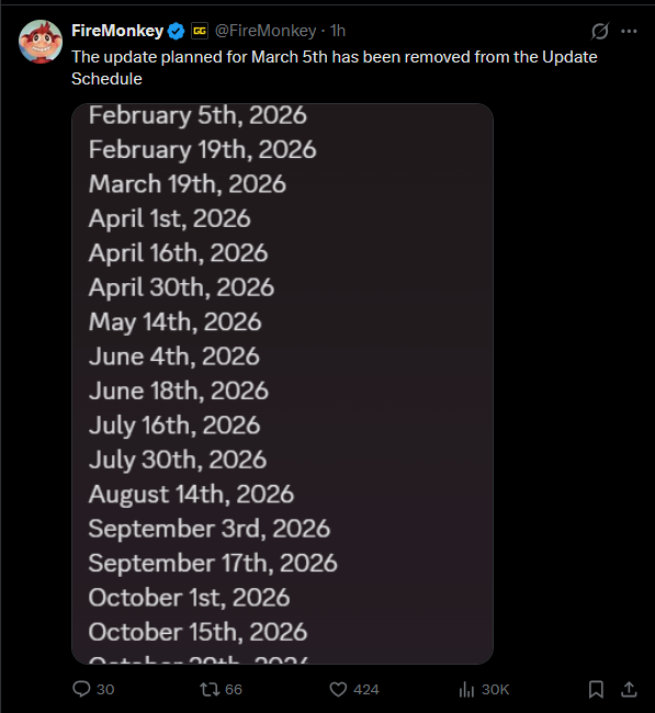 Based on the API, We are expected to have 5 major updates next season (6 if you include season launch), and one smaller update this season (v39.51).v40.00 - March 19thv40.10 - April 1stv40.20 - April 16thv40.30 - April 30thv40.40 - May 14thv40.50 - June 4th (Wasn't mentioned in the metadata.clientBlock for some playlists but was tested before)v41.00 - (June 4th or June 18th)Season 3 may start June 4th or June 18th