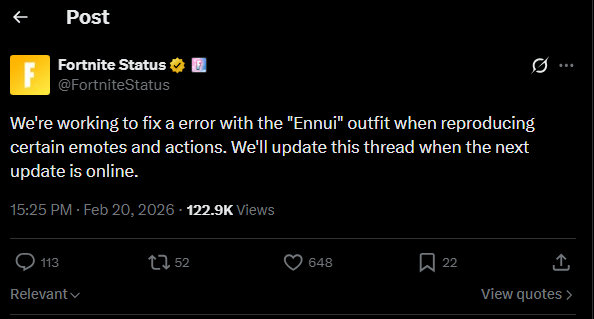 >Fortnite Battle Royale Chapter Seven: Pacific Break | Gameplay Trailerhttps://www.youtube.com/watch?v=Tv2zM8jI4gU >Fortnite Battle Royale Chapter Seven: Pacific Break | Cinematic Trailerhttps://www.youtube.com/watch?v=Eln66CJHna8 >Surf To a New Island in Fortnite BR Chapter Seven!https://www.fortnite.com/news/fortnite-battle-royale-chapter-seven-pacific-break-v39-00-update-notes>Fortnite’s Zero Point: The Story So Farhttps://www.youtube.com/watch?v=sfVP0dPJcgo >Quests, stats, shophttps://fortnite.gghttps://fortnite.gg/statshttps://fortnite.gg/shophttps://www.fortnite.com/item-shop>Season XP Leveling Pacehttps://www.fortnitexp.net/>Mission Alerts for StWhttps://freethevbucks.com/timed-missions/https://fortnitedb.com/>Lantern Fest 2026 Brings 8-Player Reload Teams to Fortnitehttps://www.fortnite.com/news/lantern-fest-2026-brings-8-player-reload-teams-to-fortnite>Chappell Roan Rides into Festival for Season 13!https://www.fortnite.com/news/chappell-roan-the-midwest-princess-rides-into-fortnite-festival>Master Your True Potential in LEGO® Fortnite Odyssey’s NINJAGO® Updatehttps://www.fortnite.com/news/master-your-true-potential-in-lego-fortnite-odysseys-ninjago-update>Fortnite Ballistic v37.10 Adds the Veiled Precision SMG, Deployable Wall Gadget, and Morehttps://www.fortnite.com/news/fortnite-ballistic-v37-10-adds-the-veiled-precision-smg-deployable-wall-gadget-and-more>Fortnite Crew February 2026 - Soleilhttps://www.fortnite.com/fortnite-crew-subscriptionPrevious:>>557871903