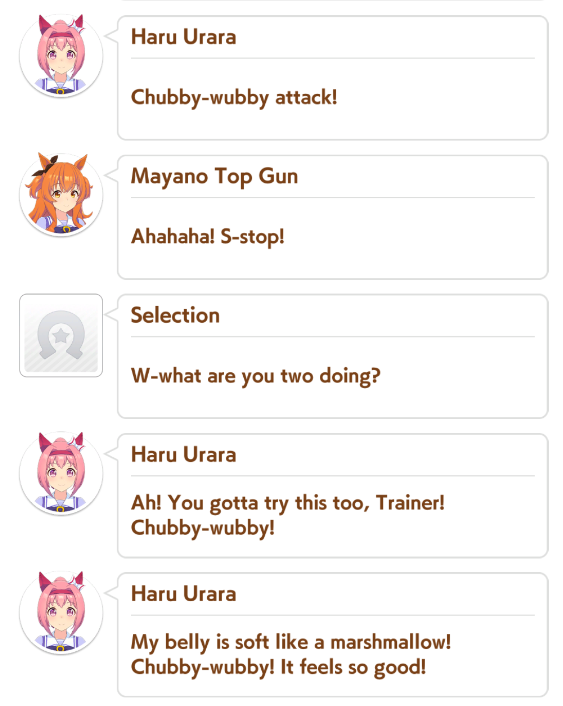>>557982368Considering you're using an Oguri Smile image, I'll assume you're shitposting, BUT, are there actual /uma/dacchis who watch sloptubers or guides BEFORE the scenario so they'll "learn" and "understand" it?I mean, I played Aoharu the first day it came out and even then I was able to grasp how to play it, and by my 3rd try/borrow, I was able to produce an ace that actually made me win my CM that time. I think all those 3 tries I tried fighting the A rank team and won twice only losing during my 1st try. I didn't know it was better going 2-1-1-1.