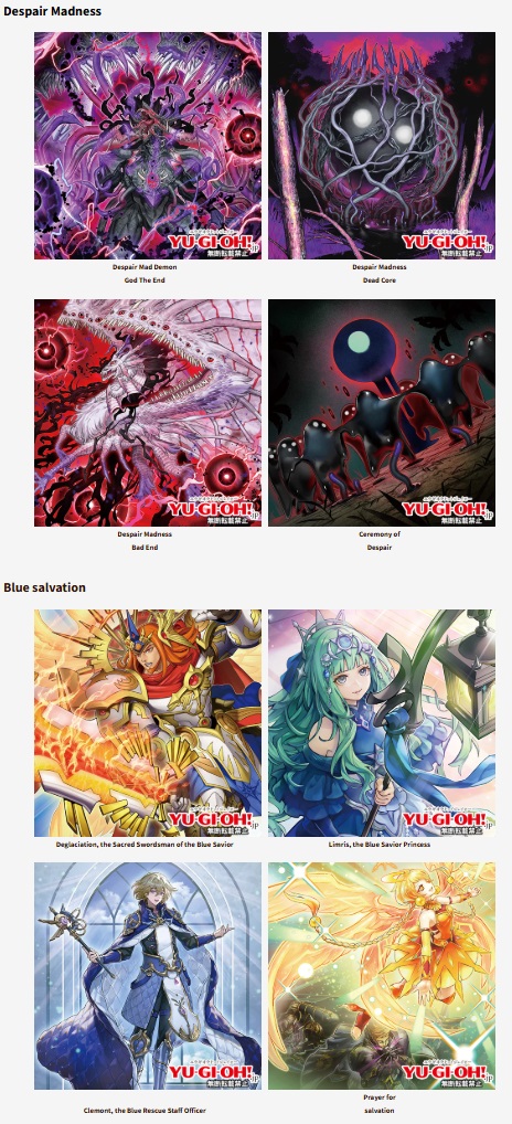 >>557981190The effects for some of these cards are already out. Seems like the Madness deck revolves around ritual summoning the black goo orb and using it to fuse the two dragons (Dead End and Bad End) into a bigger one (The End) that pops cards and summons stuff from the opponent's GY to your field.