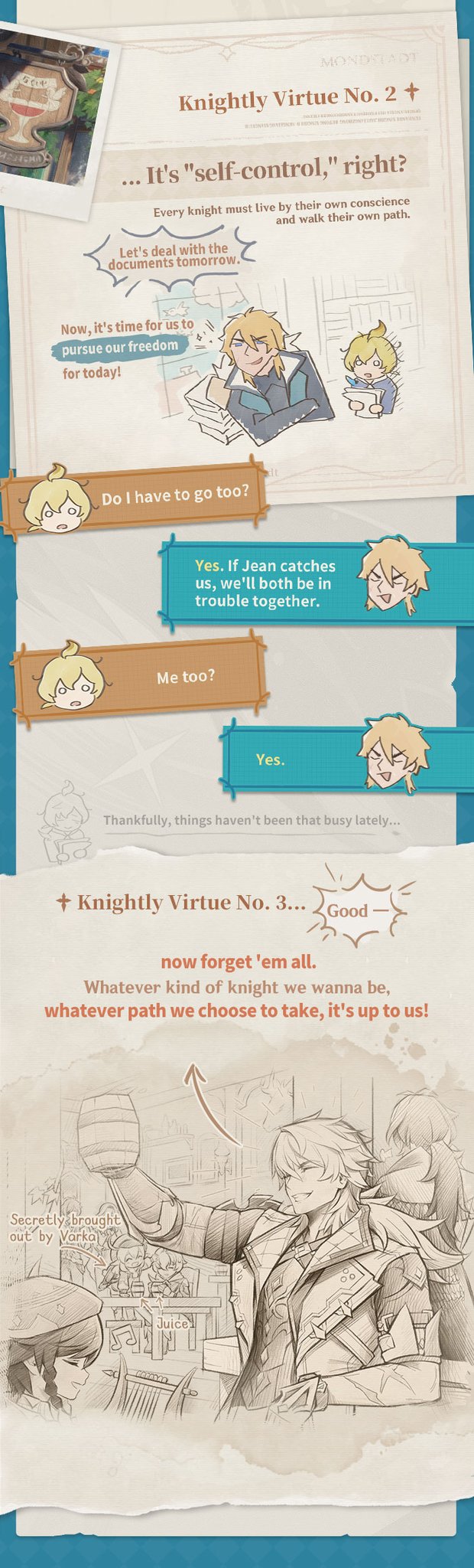 Varka: i'm sorry for always being the butt of the joke, i'm sorry for getting contantly humiliated by other characters, i'm sorry for not doing anything to help against Rerir, i'm sorry for not doing anything to help against Dottore, i'm sorry for wasting 5 years of time and resources of the Knights, i'm sorry for getting all our horses killed, i'm sorry for not beating Klee as the best dps of Mondstadt, i'm sorry having a team full of menlets.