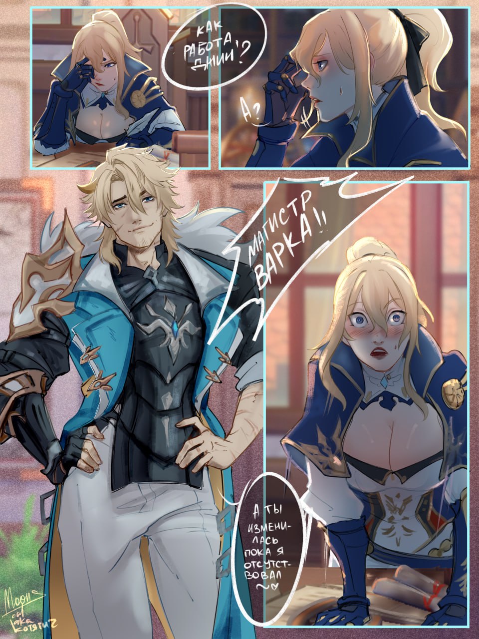 Mikhail: hey, did you hear what the guys reported last night?Lyudmila: what?Mihail: some of our friends who happened to take a walk outside to get a fresh air after drinking at angel share heard a strange sound coming from one of the bushes near the lakeLyudmila: a strange sound? Like what?Mikhail: a sound of a whip! Followed by a pig screching or maybe a boar, they cant tell. But according to them the sound is so weird that it didnt sound like your usual boar screeching sound - almost like a man-made sound, so one of them tried to take a look in there to see what happenLyudmila: uh huh and what's in there? A wounded boar?Mikhail: no! *in a whisper* its captain varkaLyudmila: huh? Mikhail: he was hugging a tree naked and tied with a rope, his back is completely exposed with several red marks in there, and he was sweating and screeching like a caught boar, like a guy possesed by a boar spirit or some boar deity! Behind him was captain lohen from the 5th division, whipping varka's back and his... butt with his belt while laughing like a maniacLyudmila: what the..Mikhail: captain lohen keep asking "who's my pig? Who's my pig? Who's my piggy pig huh?" and varka answered shamelessly "its me! I am your pig! Your pig! Your one and only PIG! I was born to be your PIG! Oink! Oink!" And then lohen whipped him again with his belt and a loud sound of 'SLAP!' can be heard after that, and then varka screech 'OINK! OINK!' louder than ever before - trembling and sweating after that slapLyudmila: oh my tsaritsa...Mikhail: yes, and upon witnessing such embarrasing sight, our people decided that it was too much and they silently retreat back to the city, to goth hotel. Such sight was enough to make even the drunkest man sobered up in fear
